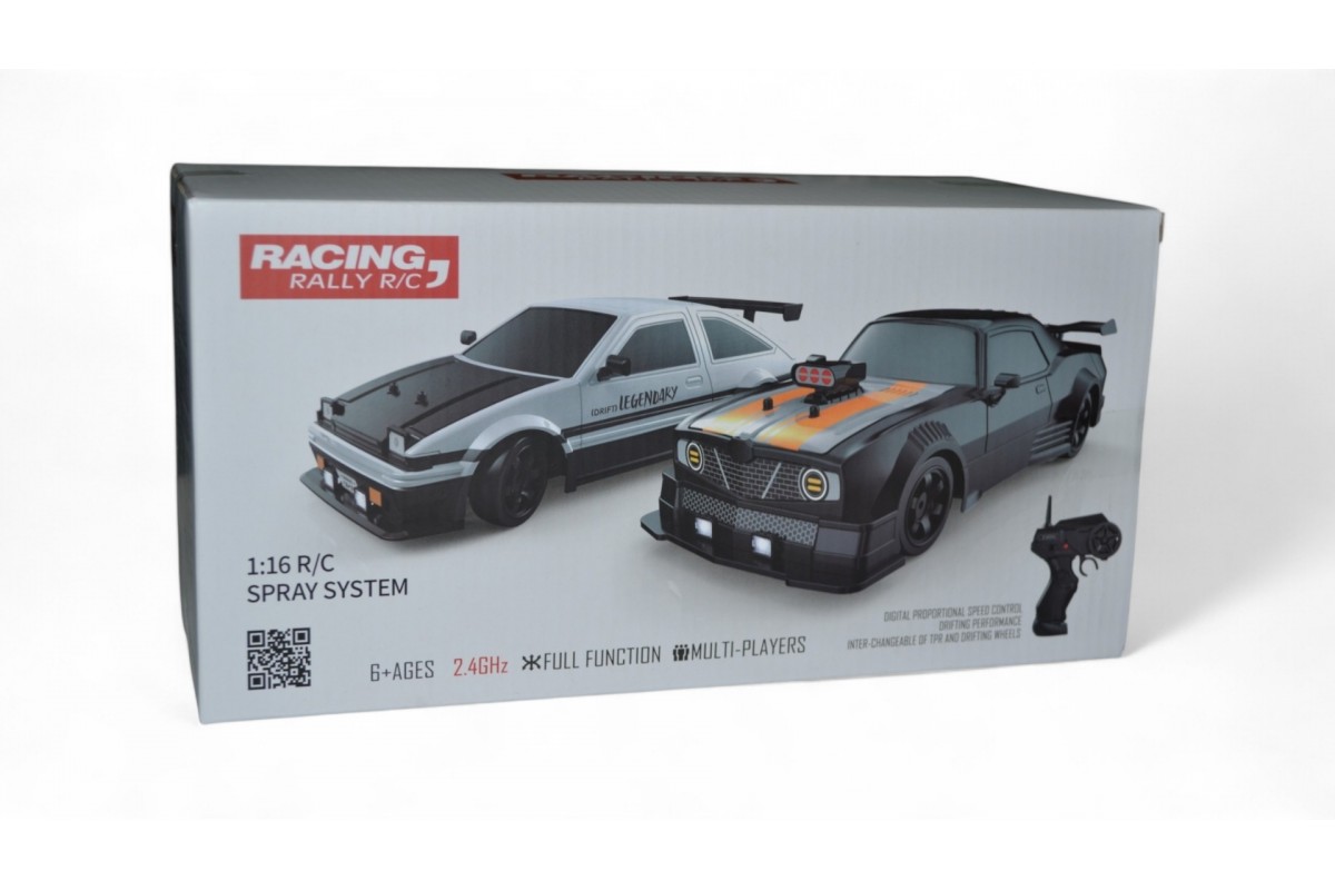Пульт дистанционного управления работает на частоте 2,4 ГГц и имеет радиус действия до 40 метров, что позволяет свободно перемещаться и управлять моделью на больших пространствах. Светодиодные фары и спрей-пар из выхлопной трубы добавляют реалистичности в процесс, погружая юного водителя в атмосферу настоящих соревнований.