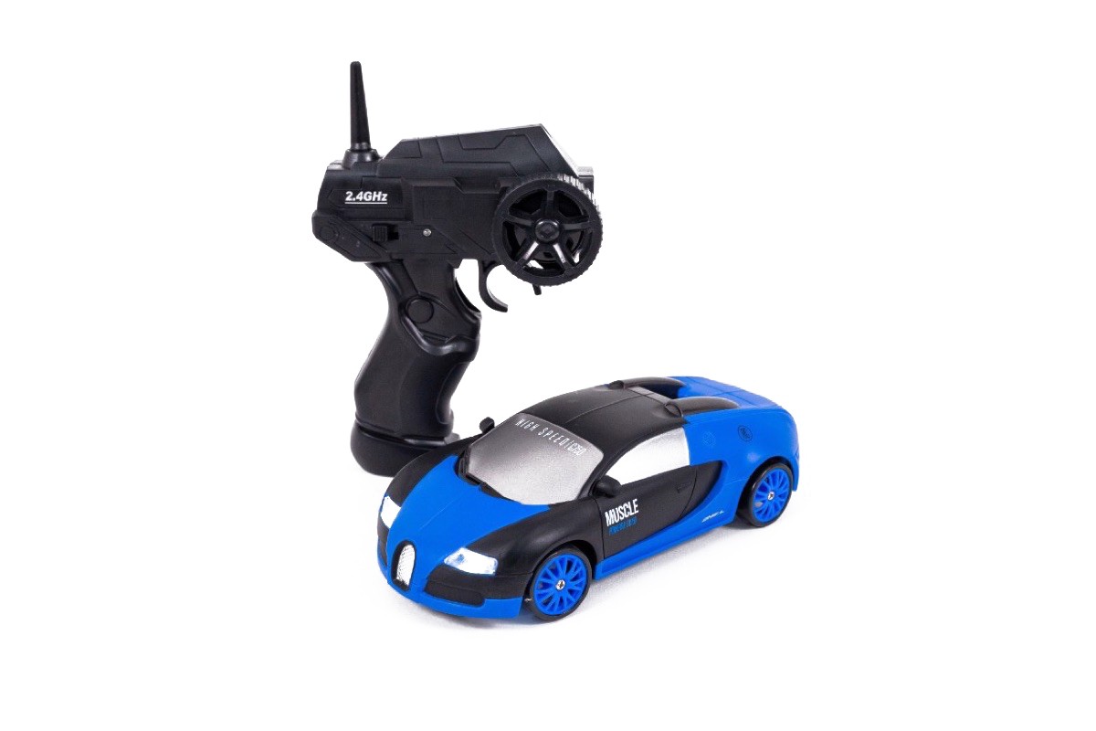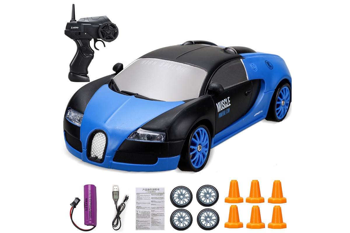 Радиоуправляемая машина для дрифта Bugatti Veyron (19 см, 15 км/ч, сменные колеса, фишки) - SC24A04 - это машина, которая предназначена для дрифта. Она имеет полный привод и выполненная в масштабе 1:24. Машинка управляется при помощи пульта ДУ, работающего на частоте 2,4 ГГц. В наборе также поставляются комплект запасных колес, дорожные конусы, зарядное устройство и аккумулятор. Во время движения у машинки светятся фары.