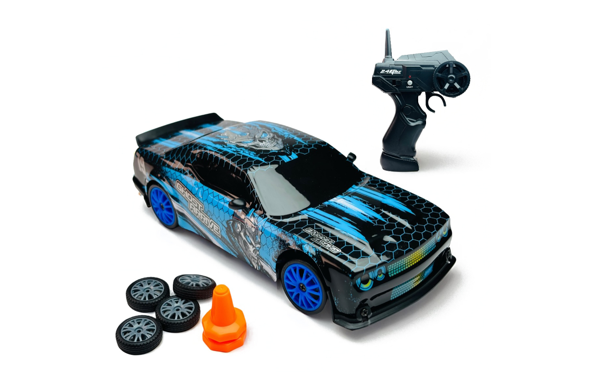 Радиоуправляемая машина для дрифта Dodge (19 см, 15 км/ч, сменные колеса, фишки) - SC24A26 - это машина, которая предназначена для дрифта. Она имеет полный привод и выполненная в масштабе 1:24. Машинка управляется при помощи пульта ДУ, работающего на частоте 2,4 ГГц. В наборе также поставляются комплект запасных колес, дорожные конусы, зарядное устройство и аккумулятор. Во время движения у машинки светятся фары.