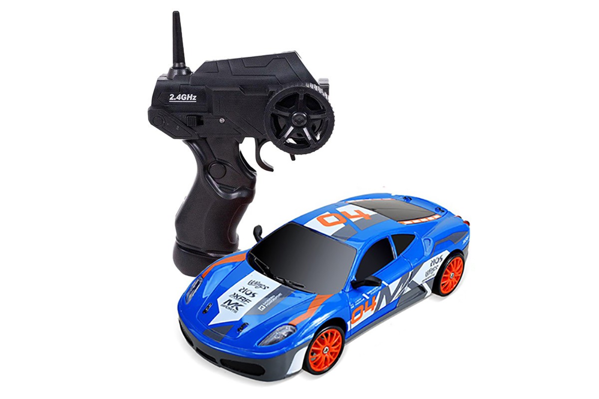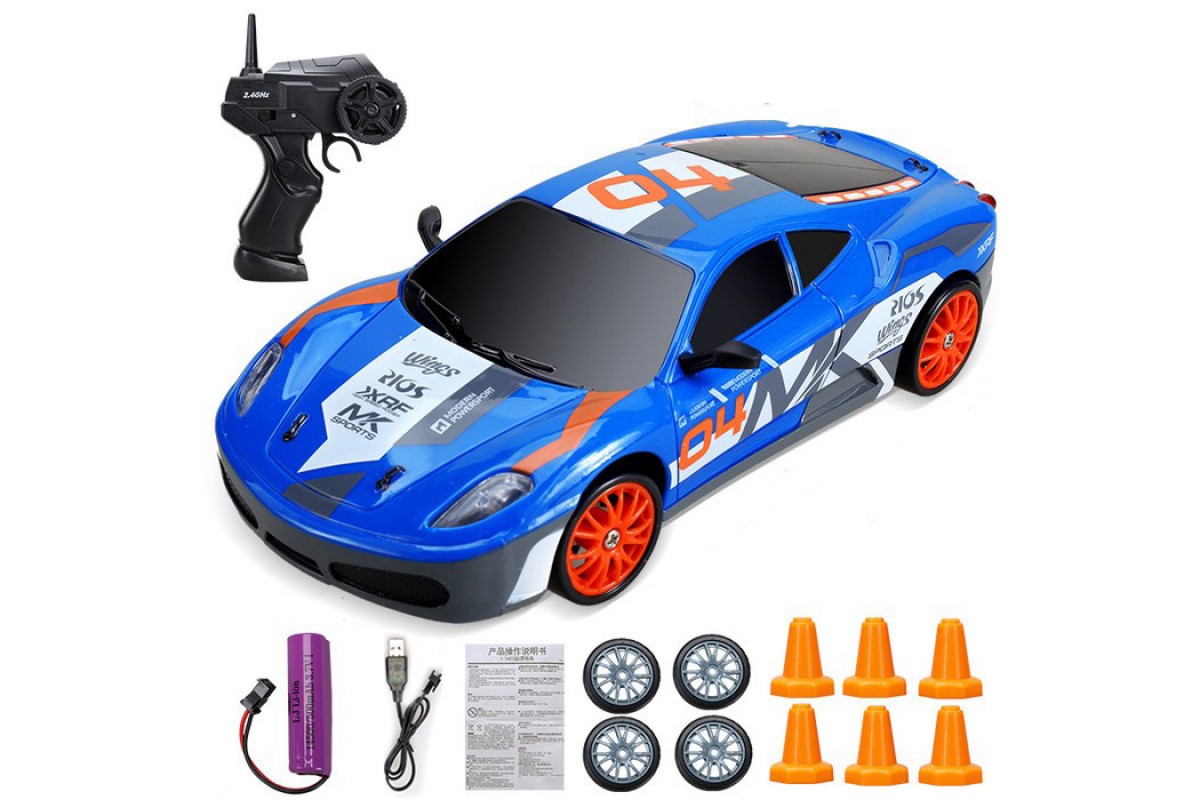 Радиоуправляемая машина для дрифта Ferrari F430 (19 см, 15 км/ч, сменные колеса, фишки) - SC24A09 - это машина, которая предназначена для дрифта. Она имеет полный привод и выполненная в масштабе 1:24. Машинка управляется при помощи пульта ДУ, работающего на частоте 2,4 ГГц. В наборе также поставляются комплект запасных колес, дорожные конусы, зарядное устройство и аккумулятор. Во время движения у машинки светятся фары.