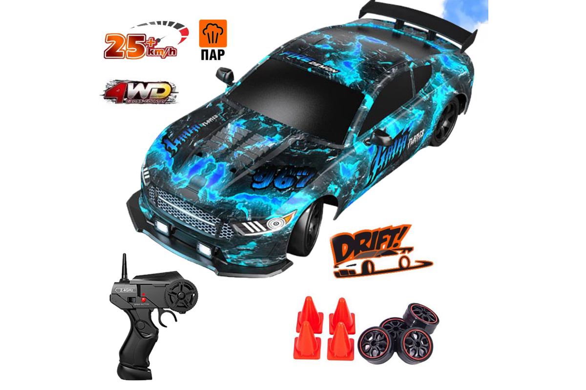 - Полный привод 4WD для стабильного дрифта