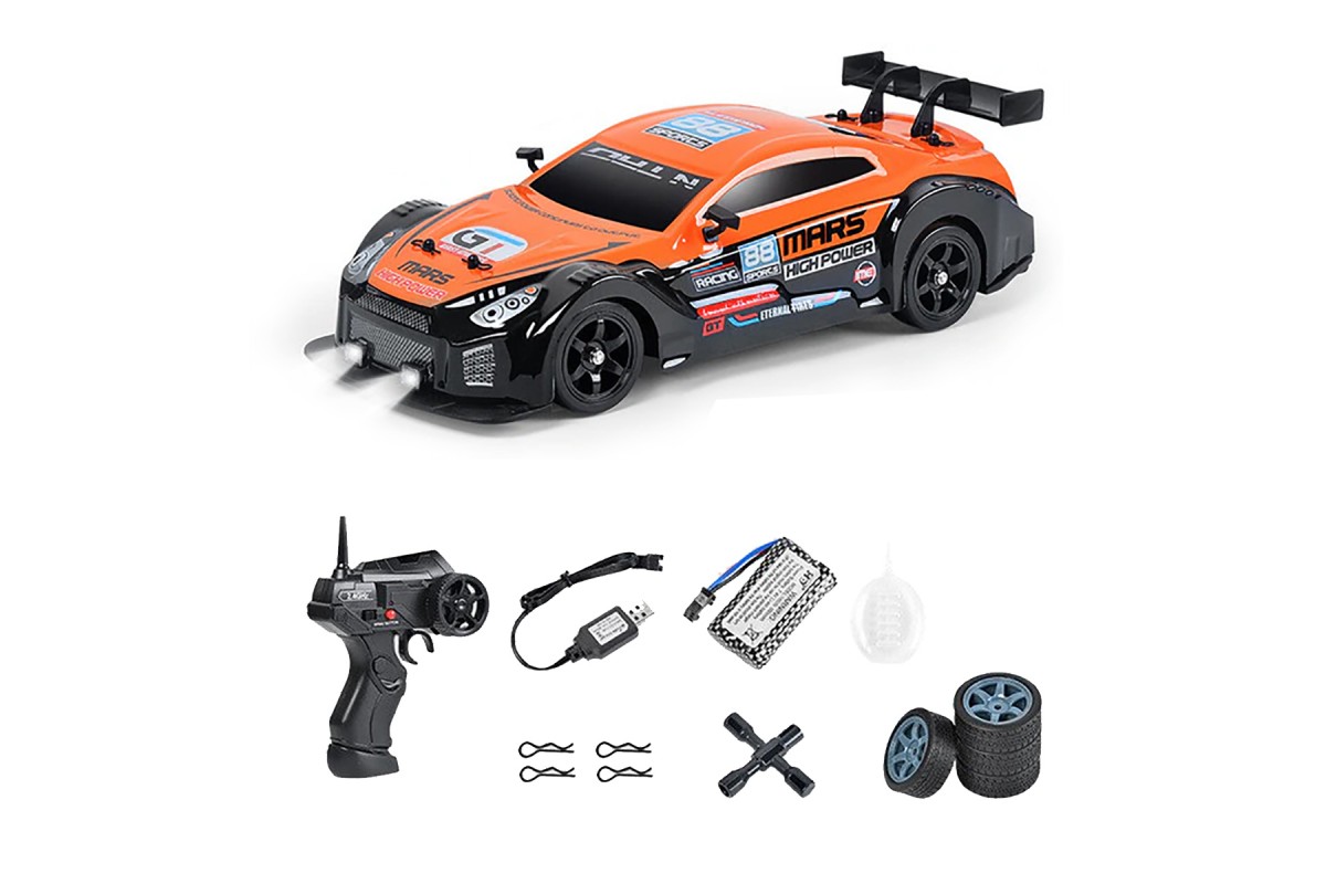 Радиоуправляемая машина для дрифта HB Nissan GTR (4WD, свет, пар, акб, 1:16) - SC16A06-1 - это машина, которая предназначена для дрифта. Она имеет полный привод и выполненная в масштабе 1:16. Машинка управляется при помощи пульта ДУ, работающего на частоте 2,4 ГГц. В наборе также поставляются комплект запасных колес, ключ для смены колес, зарядное устройство и аккумулятор. Во время движения у машинки светятся фары и можно активировать спрей-пар из выхлопной трубы.