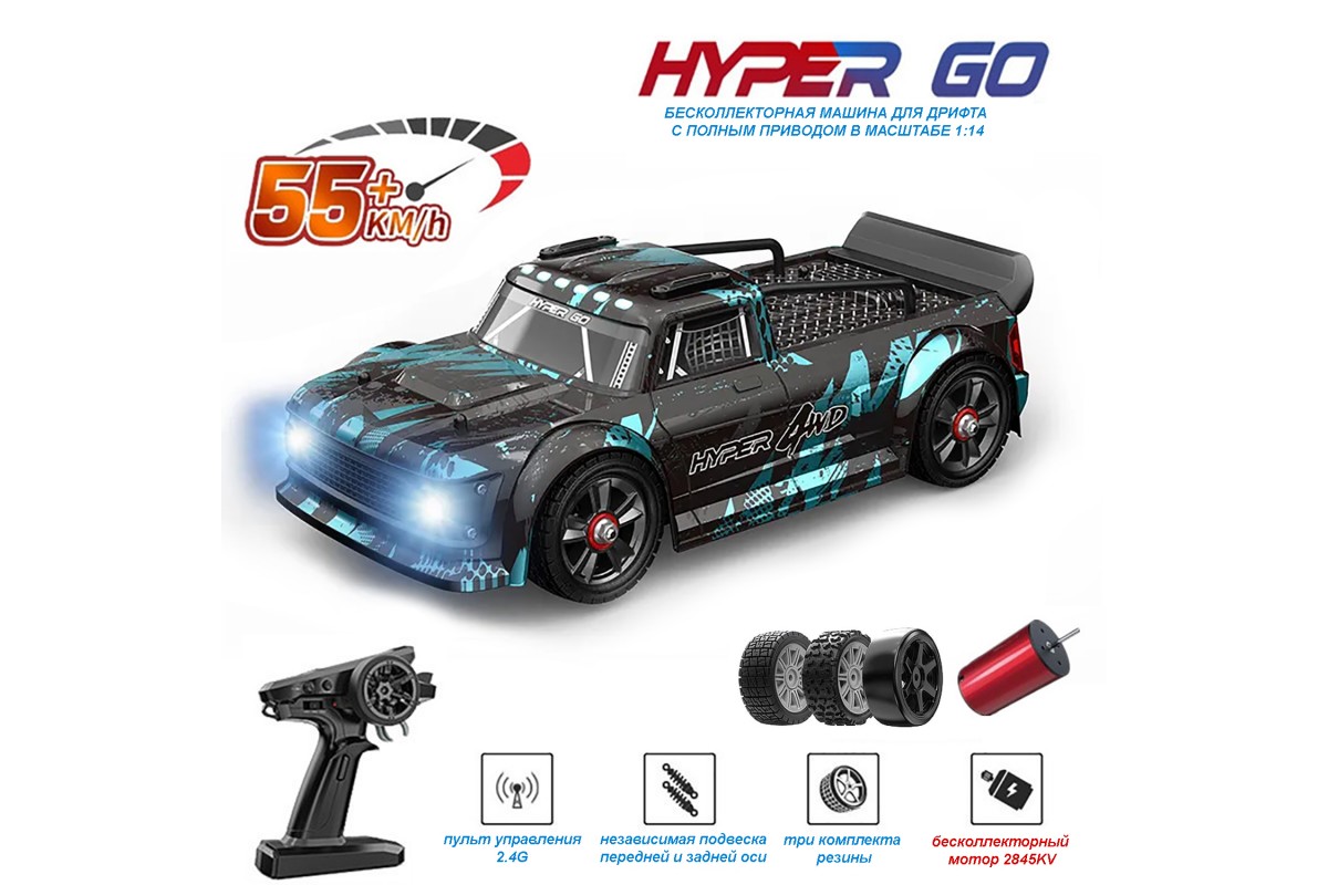 Радиоуправляемая машина для дрифта MJX Hyper Go 4WD Brushless 1:14 - MJX-14301 - это новая модель от популярного производителя MJX R/C. Автомобиль выполнен в масштабе 1/14 и отличается от конкурентов наличием 3-х комплектов колес (для дрифта и шоссейных гонок), интеллектуальной аккумуляторной батареи, бесколлекторным двигателем с системой охлаждения, дополнительным чехлом для защиты от грязи и песка, а также оптимальным соотношением цены и качества деталей.