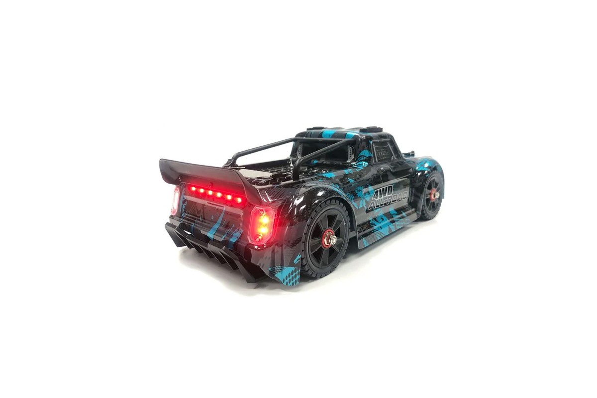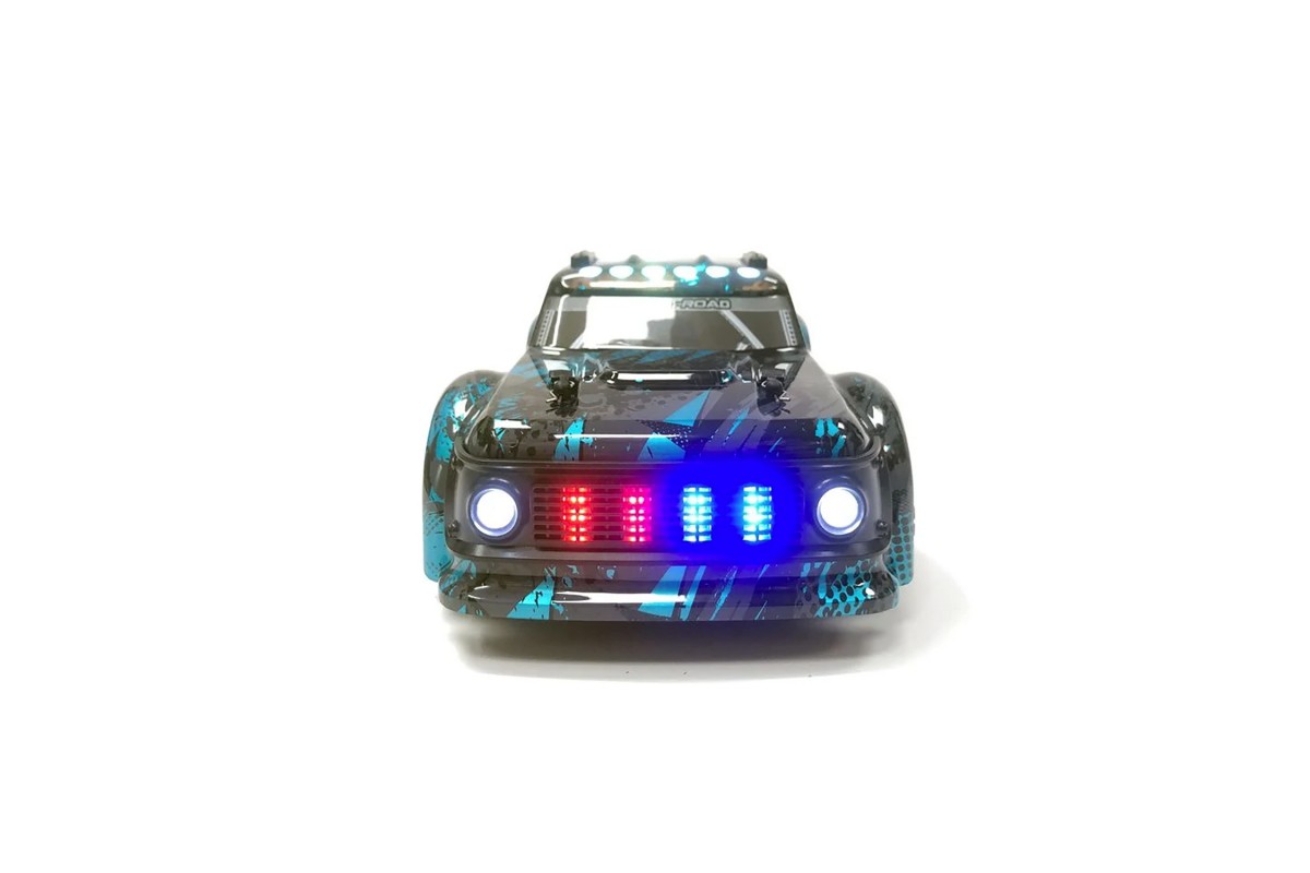 Полный привод повышает проходимость и управляемость модели. На Hyper Go установлен бесколлекторный двигатель 2845KV, влагозащищенный приемник и регулятор ESC 45А. Мощный аккумулятор Li-Ion 7.4V 2000 mah, идущий в комплекте, придает модели большую мощность! Пульт управления на частоте 2.4Ghz позволит управлять моделью на расстоянии до 120 метров. LED подсветка фар и кузова сделает игру в темное время суток незабываемой.