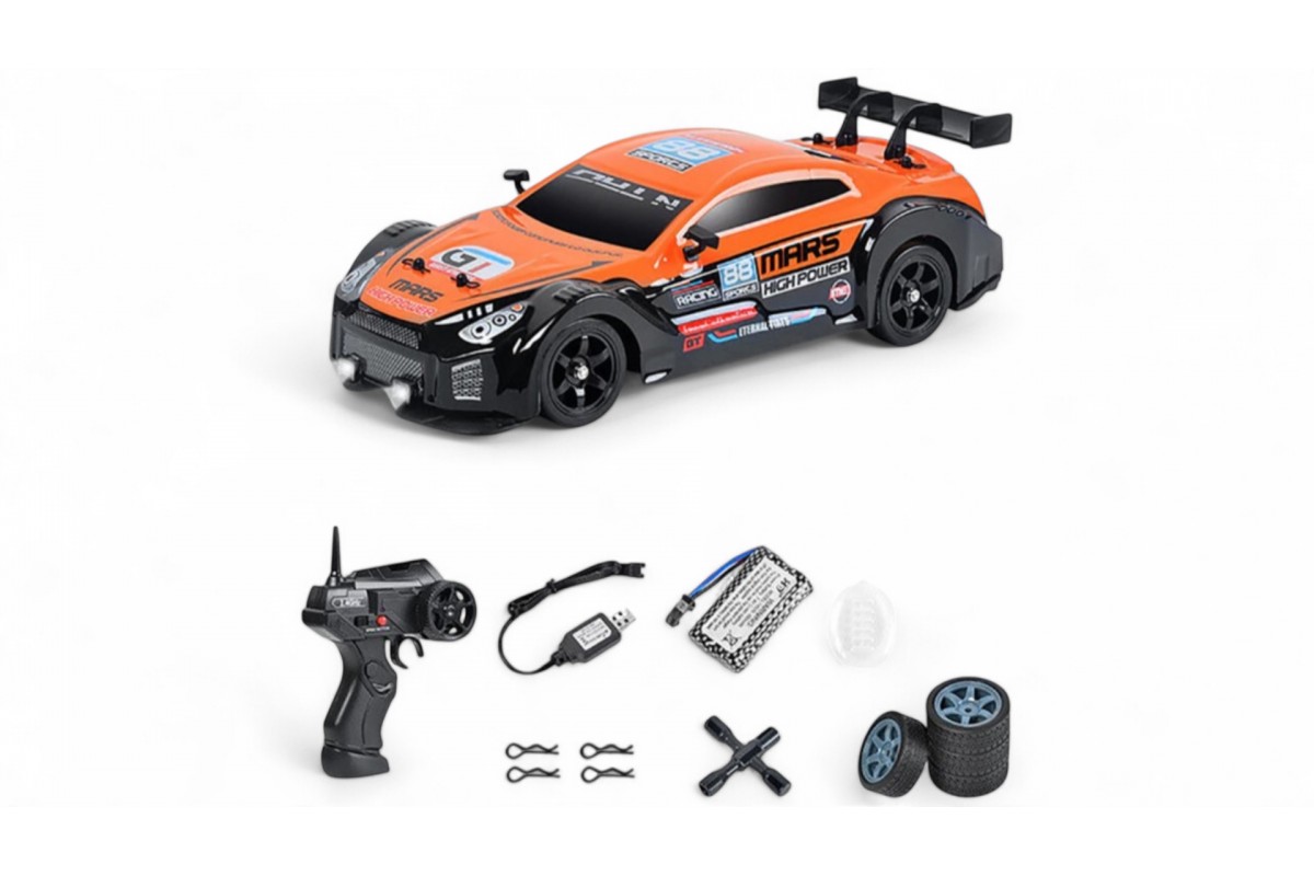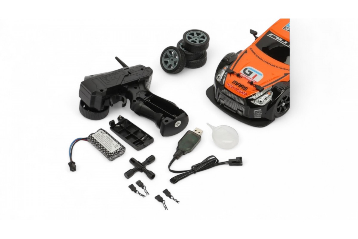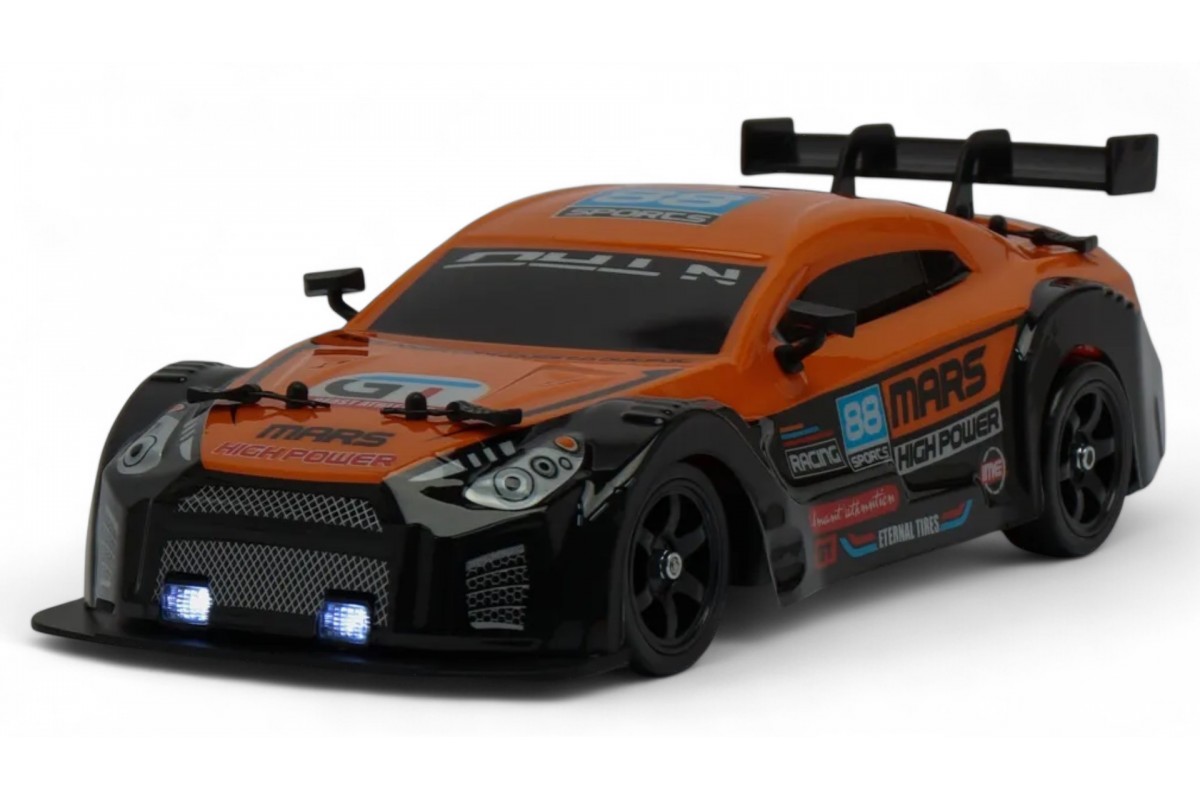 Радиоуправляемая машина для дрифта Nissan GTR 4WD в масштабе 1:16 станет отличным подарком для детей старше 6 лет и не только. Этот стильный легковой автомобиль длиной 27 см и весом 350 гр обеспечит увлекательные гонки как в помещениях, так и на улице. Полный привод 4WD позволяет уверенно проходить повороты и демонстрировать захватывающие дрифт-трюки, что делает её идеальным выбором для любителей адреналина.