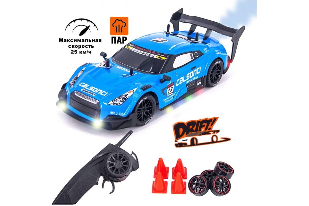 Радиоуправляемая машина для дрифта Nissan GTR R35 (свет, пар, 4WD 1:14) - RC-18C-1 - это обновленная версия радиоуправляемой модели Nissan GTR R35 для дрифта с приводом на все 4 колеса, паром и яркой подсветкой фар и днища автомобиля, которая несомненно понравится фанатам гонок и автомобилей. Восторг от управления этой машиной ждёт каждого, кто возьмёт в руки пульт! Во время движения у машинки светятся фары и можно активировать спрей-пар из выхлопной трубы.
