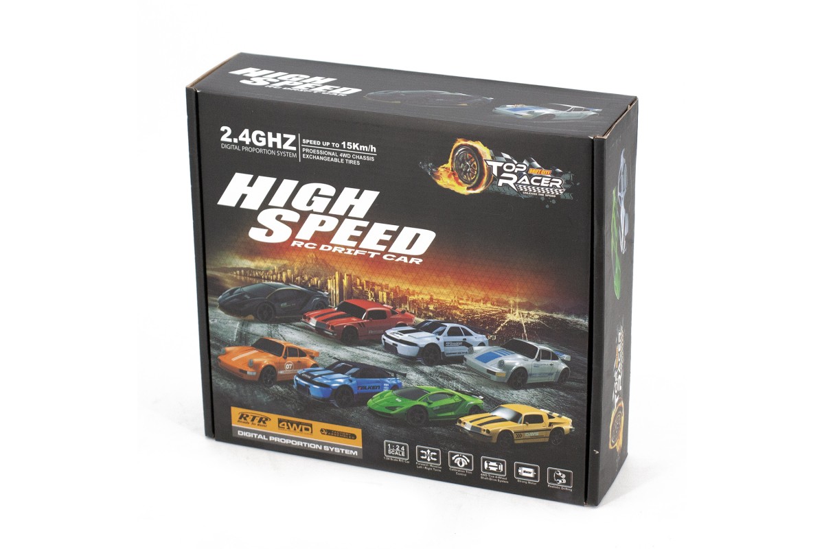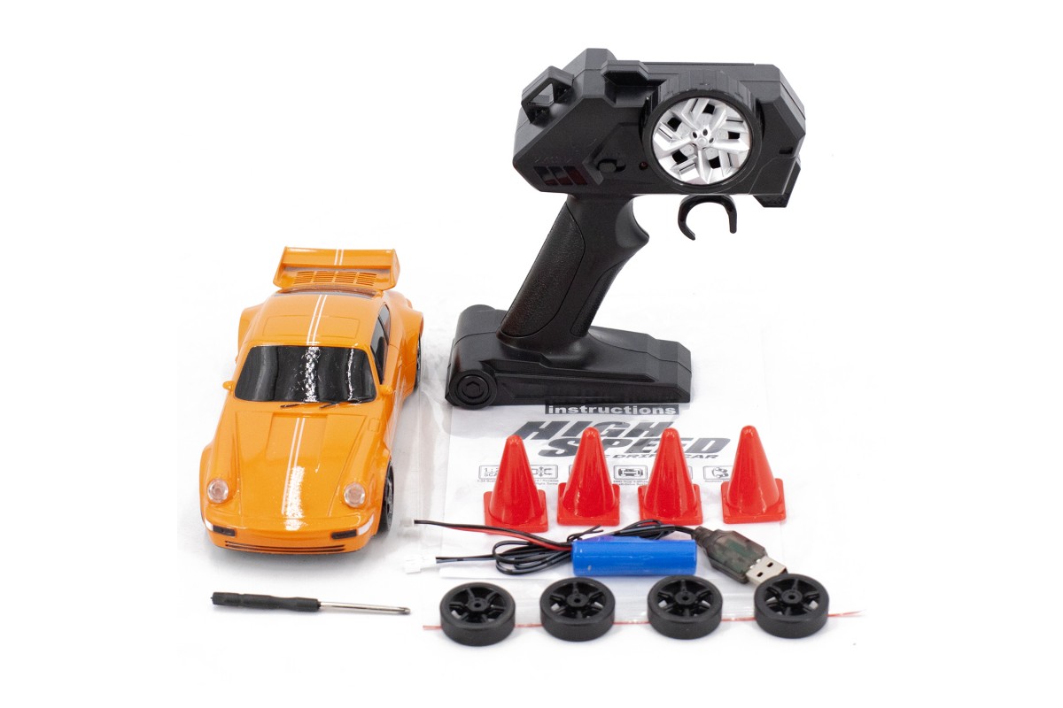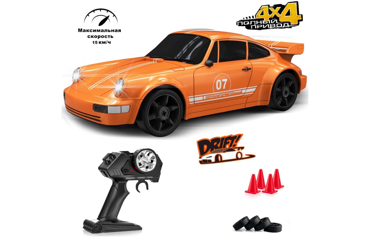 Радиоуправляемая машина для дрифта Porsche 911 GT RS 4WD 1:24 - 757-4WD33B - это машина, которая предназначена для дрифта. Она имеет полный привод и выполненная в масштабе 1:24. Машинка управляется при помощи пульта ДУ, работающего на частоте 2,4 ГГц. В наборе также поставляются комплект запасных колес, дорожные конусы, зарядное устройство и аккумулятор. Во время движения у машинки светятся фары.