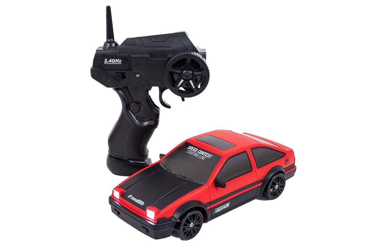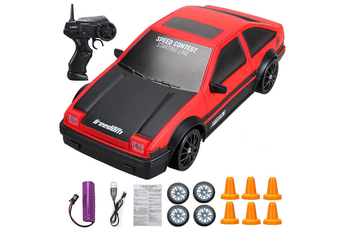 Радиоуправляемая машина для дрифта Toyota AE86 (19 см, 15 км/ч, сменные колеса, фишки) - SC24A01 - это машина, которая предназначена для дрифта. Она имеет полный привод и выполненная в масштабе 1:24. Машинка управляется при помощи пульта ДУ, работающего на частоте 2,4 ГГц. В наборе также поставляются комплект запасных колес, дорожные конусы, зарядное устройство и аккумулятор. Во время движения у машинки светятся фары.