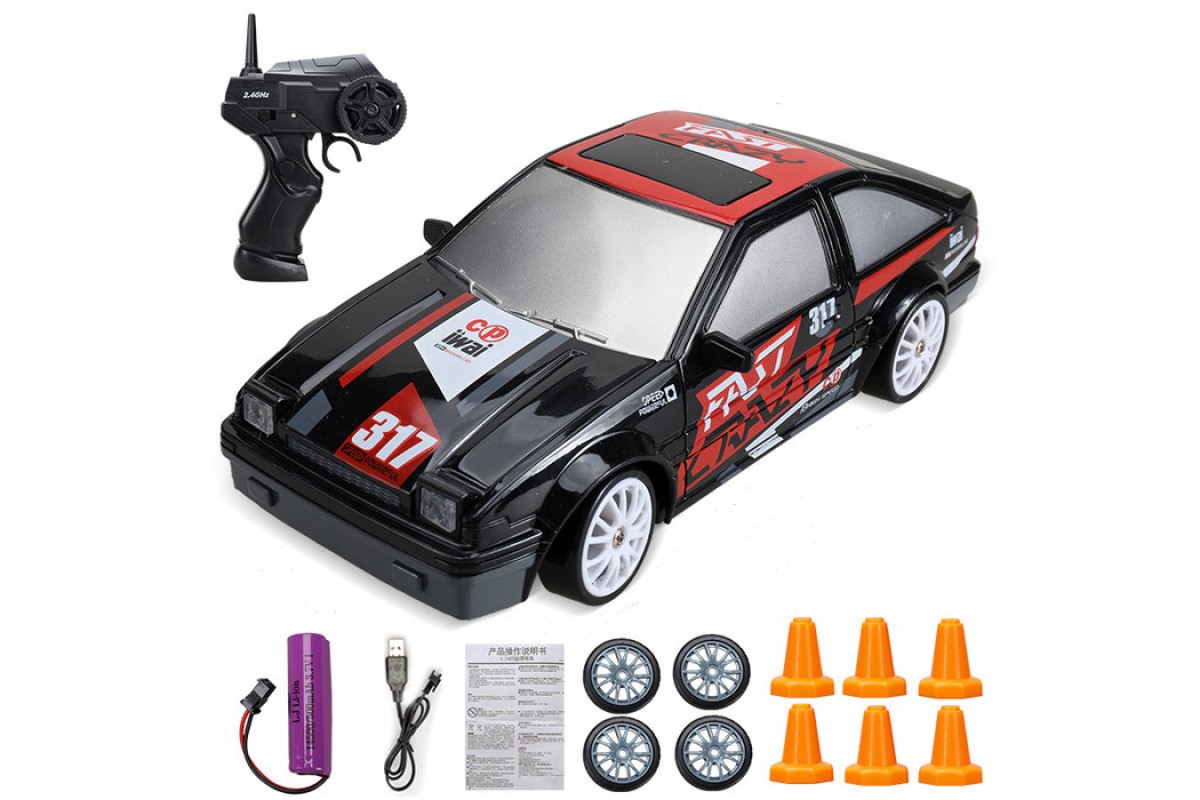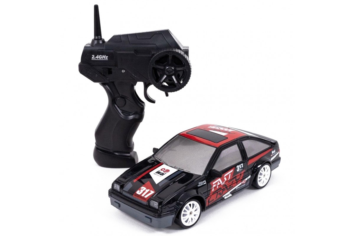Радиоуправляемая машина для дрифта Toyota AE86 (19 см, 15 км/ч, сменные колеса, фишки) - SC24A07 - это машина, которая предназначена для дрифта. Она имеет полный привод и выполненная в масштабе 1:24. Машинка управляется при помощи пульта ДУ, работающего на частоте 2,4 ГГц. В наборе также поставляются комплект запасных колес, дорожные конусы, зарядное устройство и аккумулятор. Во время движения у машинки светятся фары.