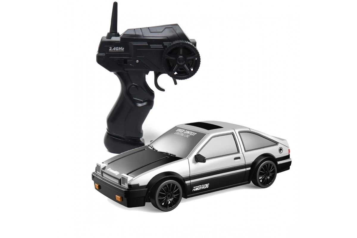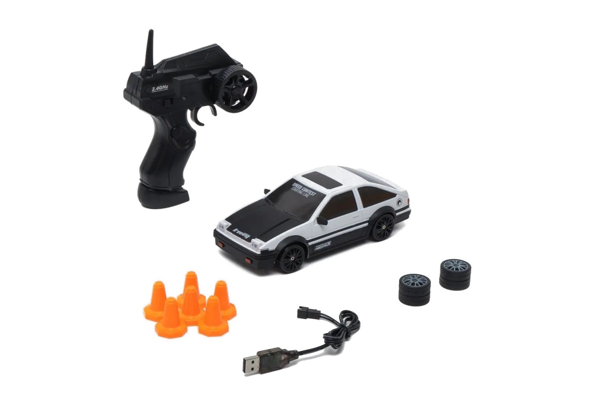 Радиоуправляемая машина для дрифта Toyota AE86 (19 см, 15 км/ч, сменные колеса, фишки) - SC24A13 - это машина, которая предназначена для дрифта. Она имеет полный привод и выполненная в масштабе 1:24. Машинка управляется при помощи пульта ДУ, работающего на частоте 2,4 ГГц. В наборе также поставляются комплект запасных колес, дорожные конусы, зарядное устройство и аккумулятор. Во время движения у машинки светятся фары.
