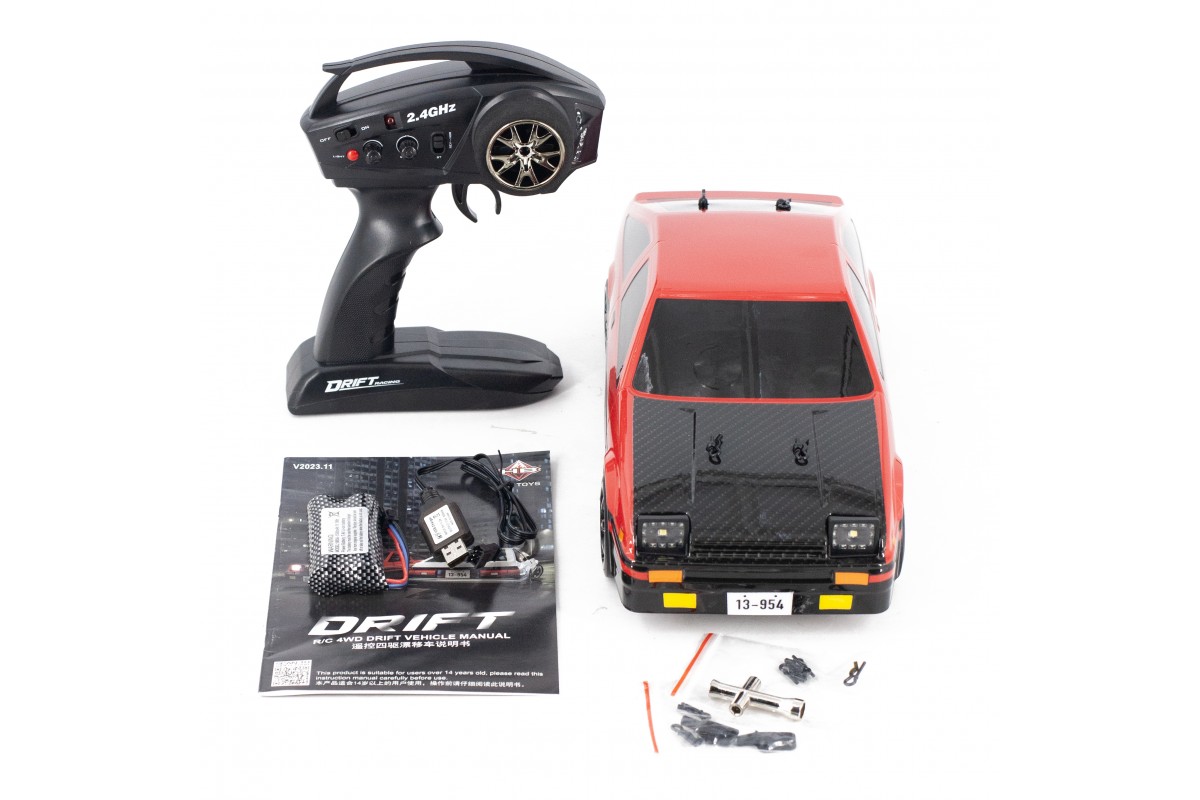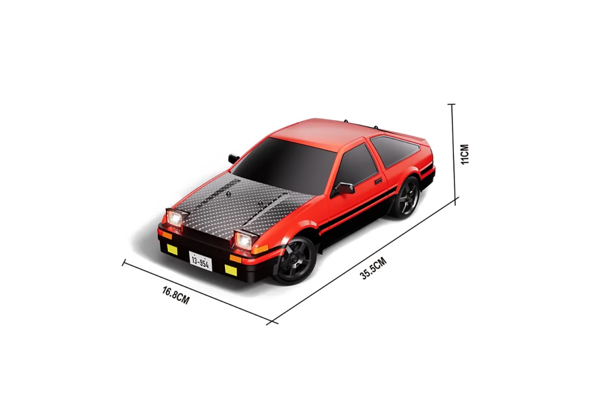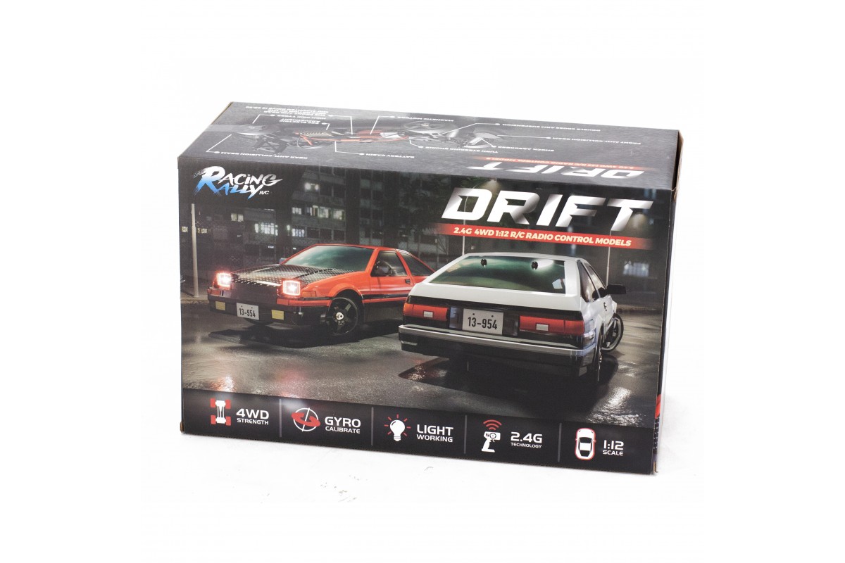 Радиоуправляемая машина для дрифта Toyota AE86 (35 см, 30 км/ч, акб, 1:12) - HB-R1201 - это спортивный автомобиль для дрифта с полным приводом в масштабе 1:12, который поставляется в полностью готовом к использованию виде. Модель работает от электрического двигателя и развивает скорость около 30 км/ч. В комплекте есть все, что нужно для первого заезда.