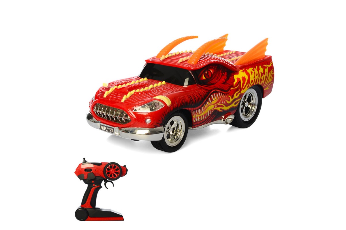 Автомобиль по дизайну напоминает Дракона, у которого светятся усики и зубы. Кроме того машинка спереди оснащена огнями (свет фар). Два маленьких колеса спереди и два больших колеса сзади придает машине особый стиль. Машина имитирует четыре вида звука работающего двигателя и один звуковой сигнал.