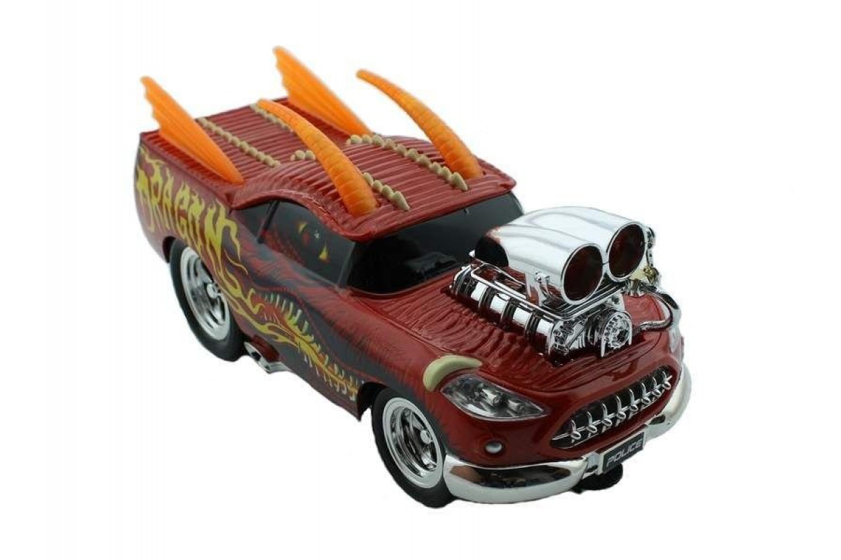 Машинка-дракон не боится ничего. С игрушкой будет одинаково интересно играть на улице, дома или в школе. Придумайте импровизированный трек и препятствия для этого монстра и будьте уверены, что автомобиль справится с любыми сложностями на ура.