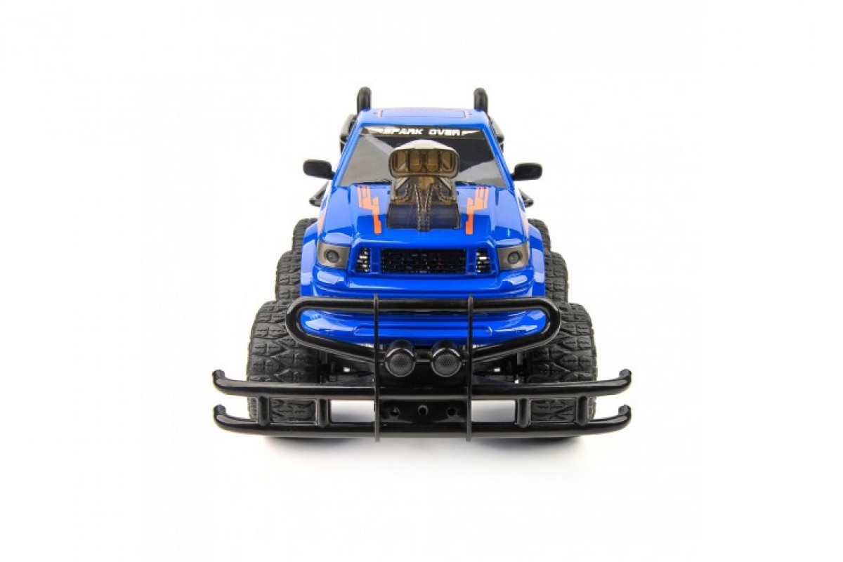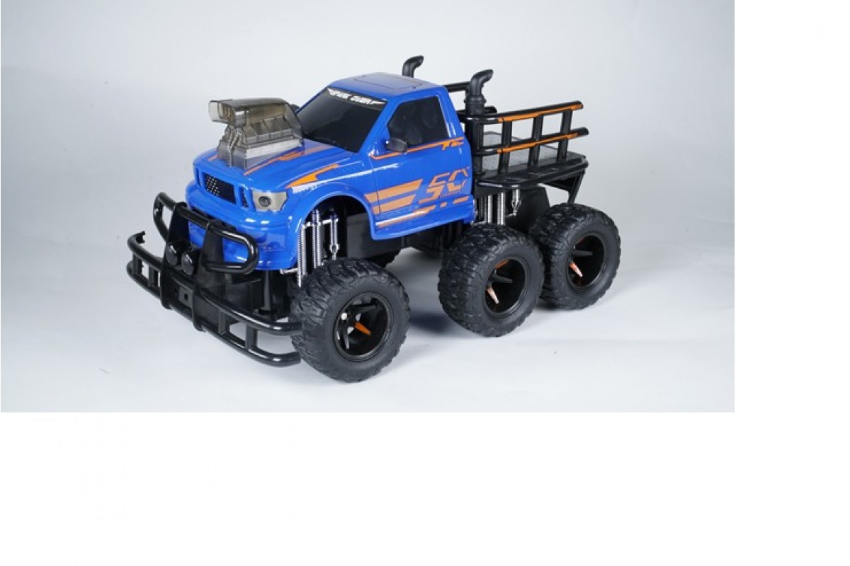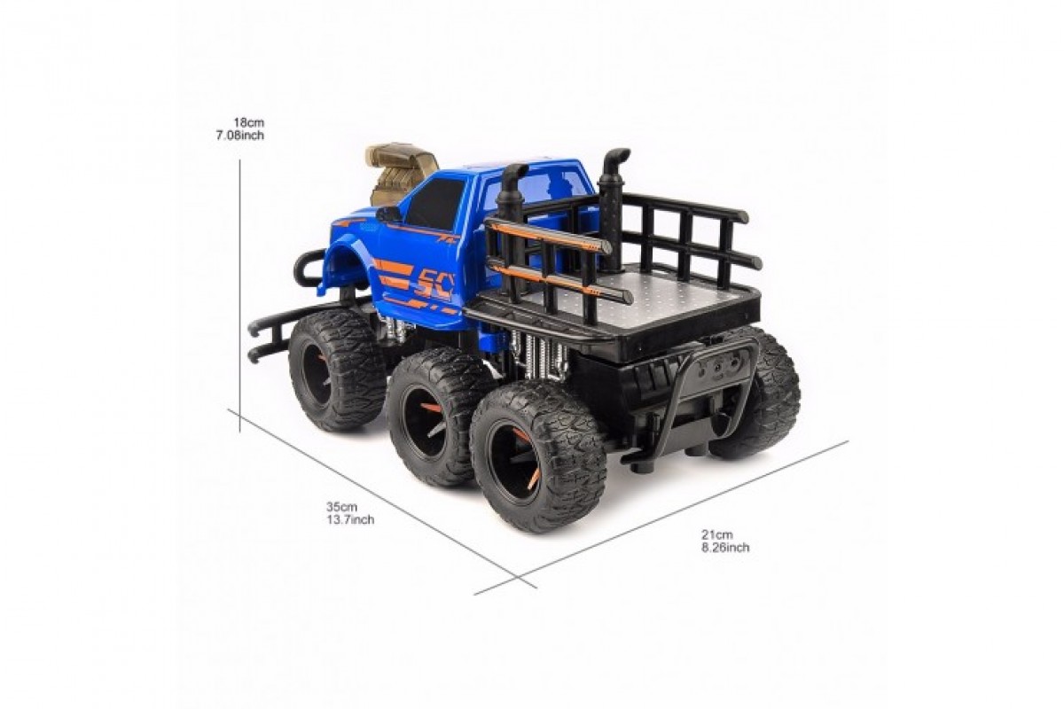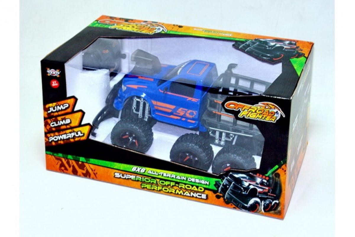 Радиоуправляемый гоночный джип отличается очень интересным дизайном – в виде крутого внедорожника. Предназначен для гонок как на ровных поверхностях, так и по бездорожью. 6 огромных резиновых колес с глубокими протекторами предают данной модели устойчивость на дорогах и полный контроль. Корпус выполнен из ударопрочного ABS пластика. Впереди присутствует имитация бампера безопасности. Машинка работает от аккумулятора 6V, пульт – крона 9V.