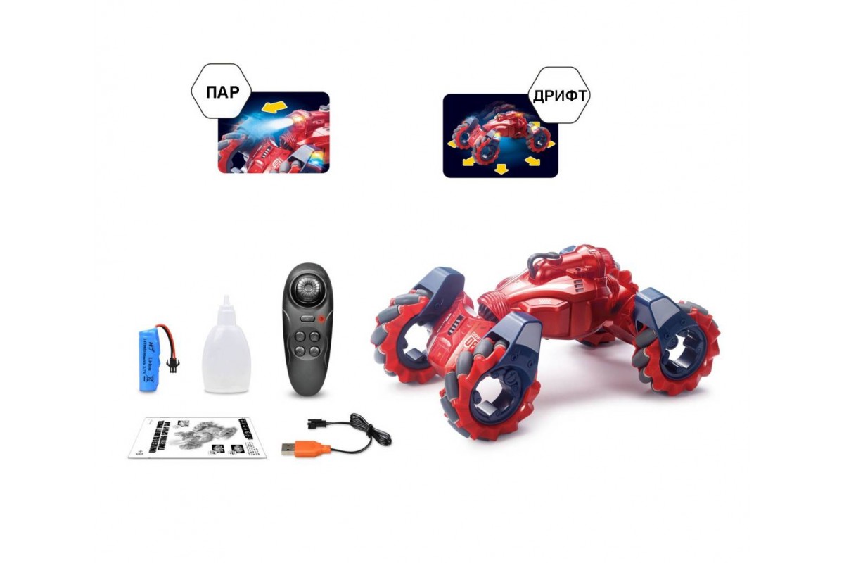 Радиоуправляемая машина (гиропульт, пар) 1:12 - RWG123 - это машинка перевертыш дрифт Твистер, которая является несомненным хитом продаж среди радиоуправляемых моделей. Обновленная версия стала еще лучше. О такой машинке мечтает каждый мальчик. Возможности машинки просто невероятны. Она может ездить, крутиться на месте, и даже пускать пар! Но главная особенность заключается в управлении и уникальных колесах с яркой светодиодной подсветкой. Данной машинкой можно управлять при помощи специального пульта, который входит в комплект с машинкой. Увлекательный процесс управления понравится не только детям, но и взрослым. И все это будет сопровождаться звуками работающего мотора, яркой подсветкой колес, паром и песнями. Особенно эффектно машинка смотрится в темноте.