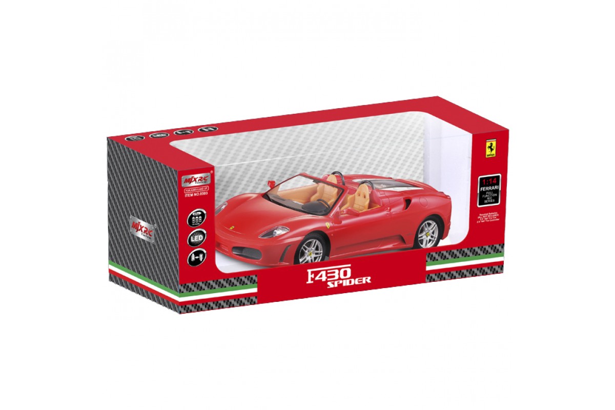 Радиоуправляемая машина MJX R/C Ferrari F430 Spider 1:14 - полноуправляемая модель, полностью повторяющая внешний вид автомобиля Ferrari F430 Спайдер со светотехникой с точностью повторяет форму и детали настоящего автомобиля, а всё необходимое для запуска уже включено в комплект. Игрушка официально лицензирована Ferrari Spa и имеет сертификат соответствия Ростест.