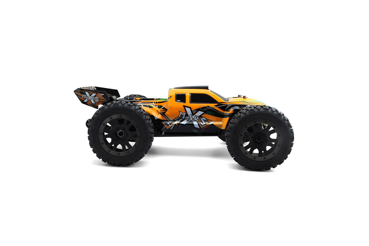 Радиоуправляемая машина монстр HSP / HNR MARS-X 4WD Brushless 1:8 - H9901-HN9095-1 - это монстр на пульте управления с полным приводом и задним дифференциалом, что положительно влияет на проходимость и управляемость. Модульное шасси обладает отличными ходовыми характеристиками и не требует сложного обслуживания. Корпус внедорожника выполнен из ударопрочного сплава. Он пройдет любой краш-тест без каких-либо повреждений.