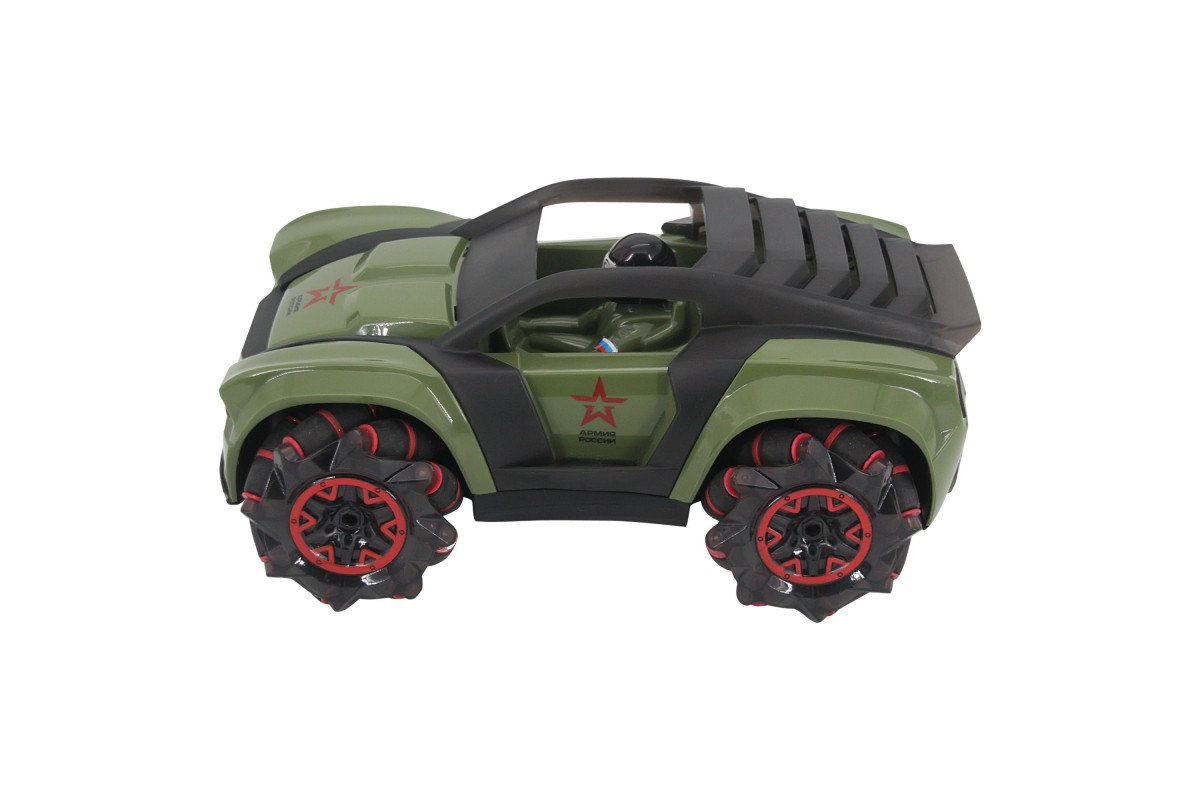 - Модель осуществляет движение вперед, назад боковой дрифт на 45°, движение вбок на 90°, дрифт передних и задних колес, скольжение во все стороны, управляемый занос, вращение на 360°.