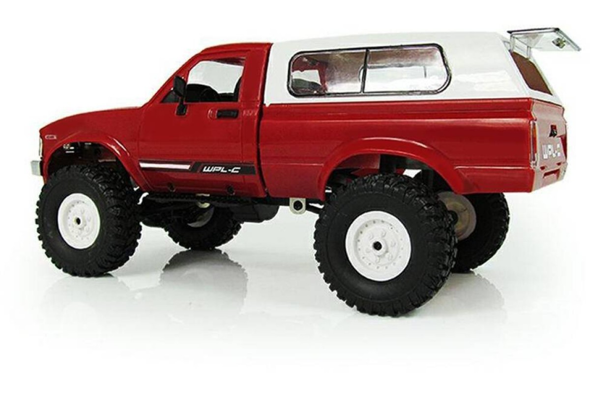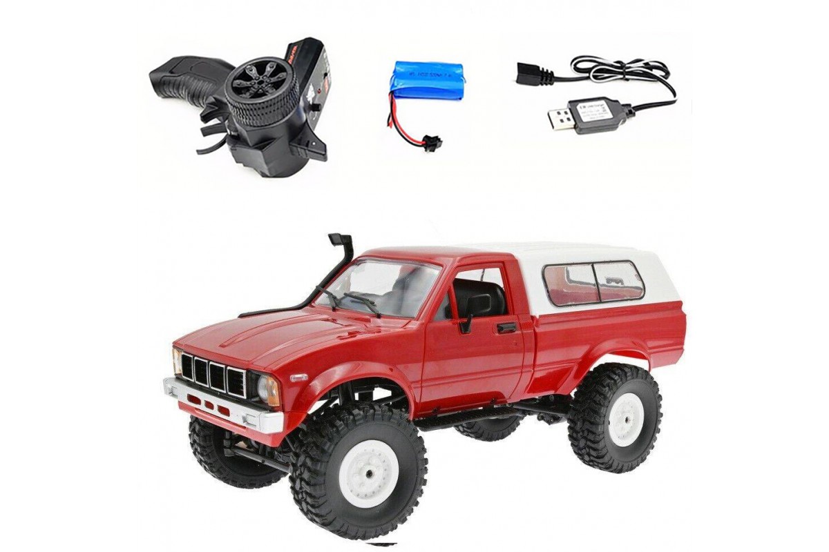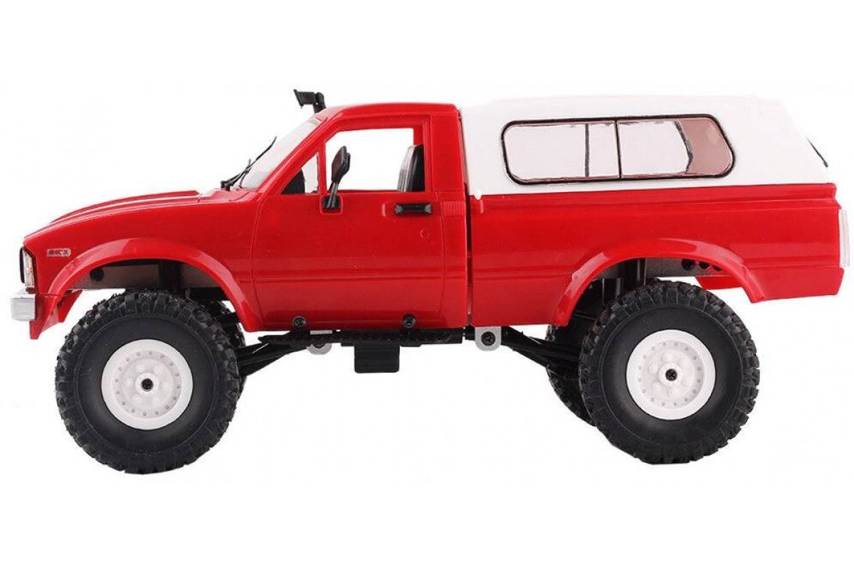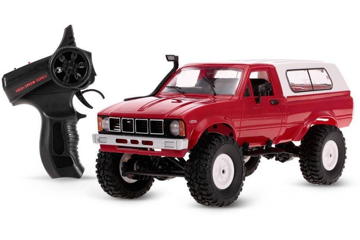 Радиоуправляемая машина WPL пикап Hilux (красная) 4WD 2.4G 1:16 RTR - WPLC-24-RED - это радиоуправляемый внедорожник красного цвета в масштабе 1/16 оснащен полным приводом, длинноходной пружинной подвеской, как у моделей ''краулер'', и мощным коллекторным электромотором. Внедорожник имеет богатую деталировку и может быть оборудован светящимися фарами. Кузов изготовлен из прочного АВS пластика, в кабине можно увидеть сиденья, руль и интерьер. Легкосъемная задняя часть кузова позволяет быстро превратить внедорожник в грузовой пикап. Li-Ion аккумулятор 7.4В 500мАч спрятан в багажном отсеке под кабиной. Для установки батареи предусмотрен открывающийся люк.