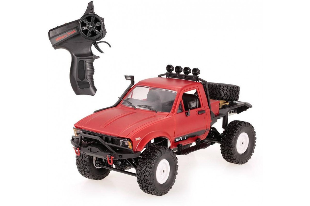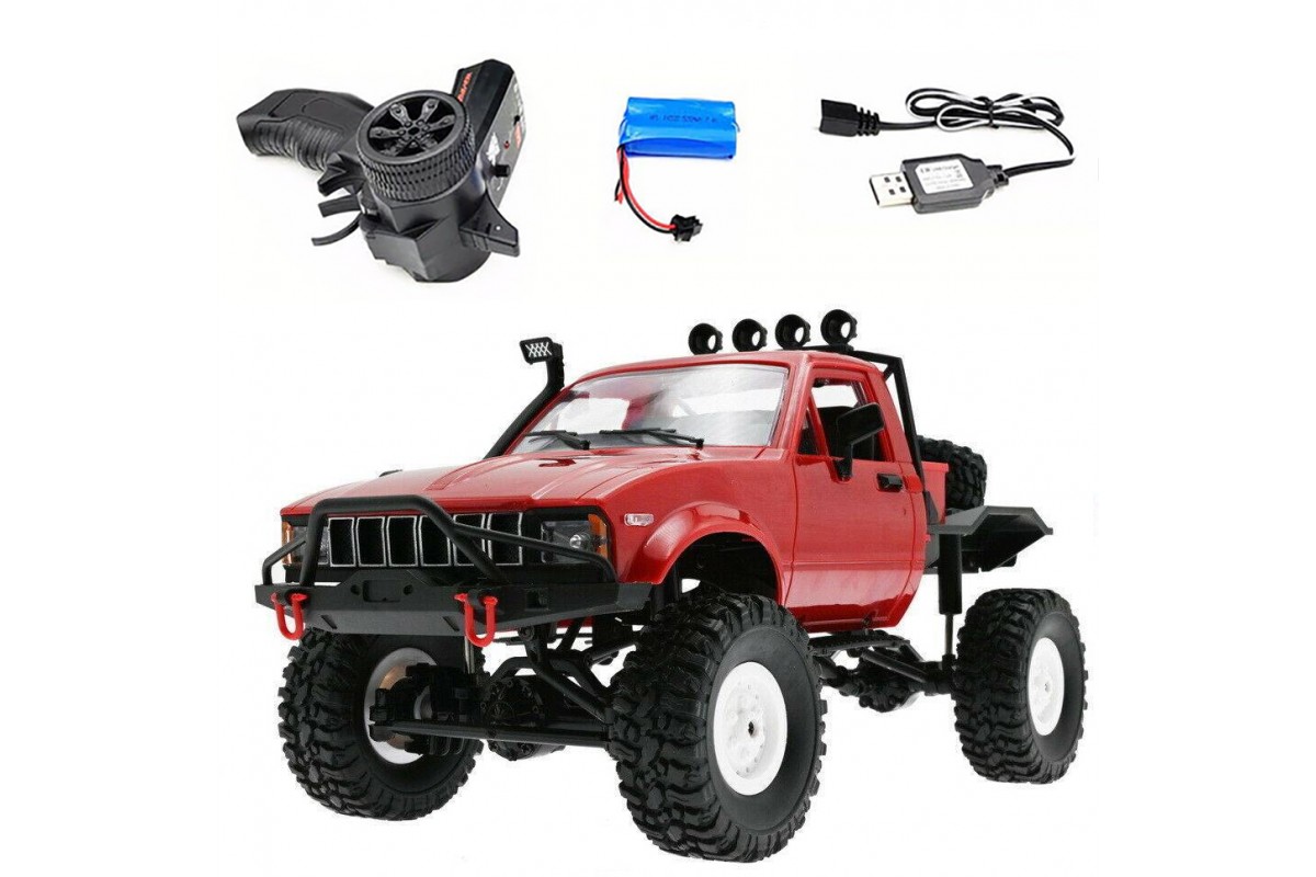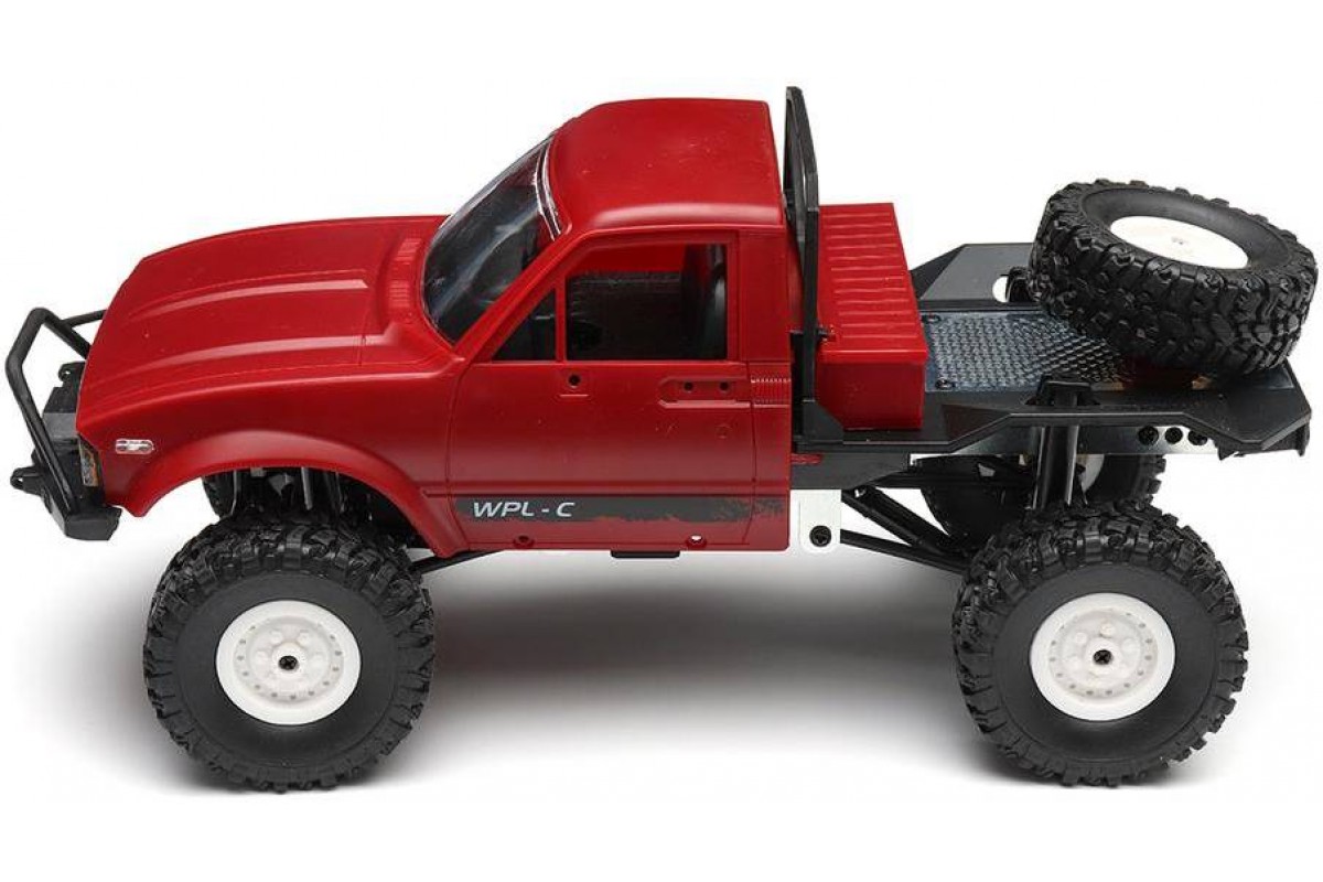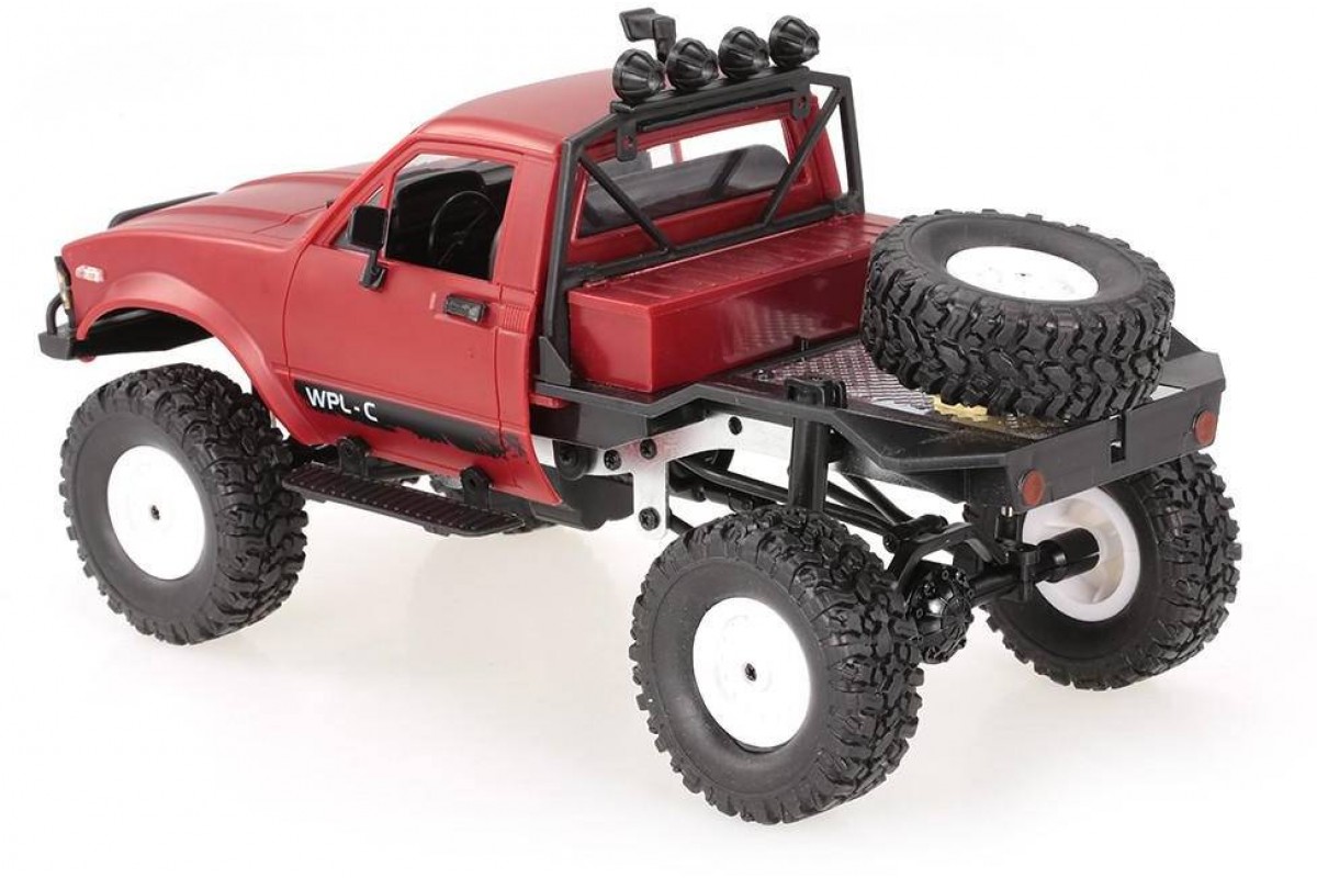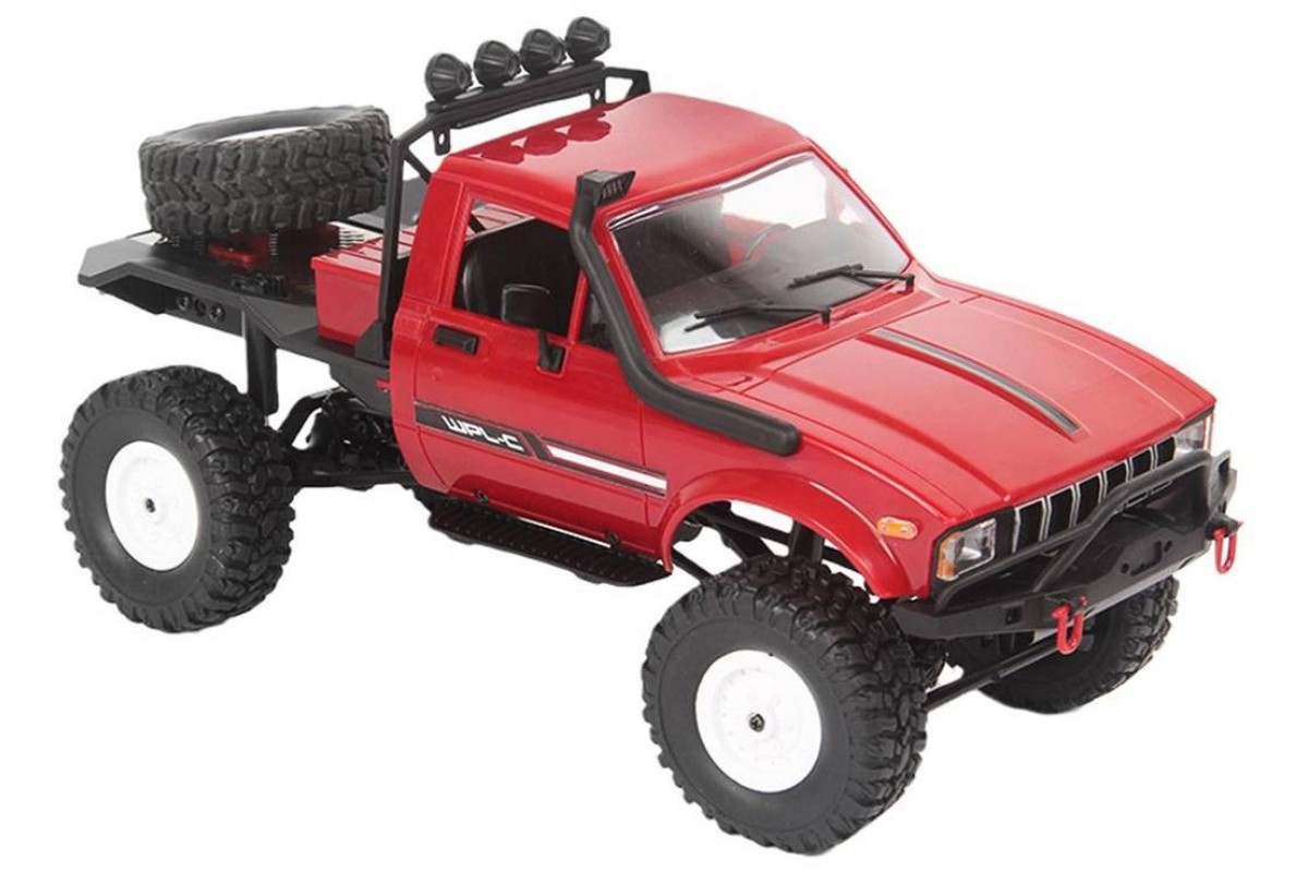 Радиоуправляемая машина WPL пикап Hilux (красный) 4WD 2.4G 1:16 RTR - WPLC-14-RED - это радиоуправляемый внедорожный джип 1/16, оснащен полным приводом, действующей рессорной подвеской как у моделей ''краулер'' и мощным коллекторным электромотором. Внедорожник выпускается в различных вариантах окраски, имеет богатую деталировку и светящиеся передние фары. В кабине можно увидеть сиденья, руль и интерьер. Кабина изготовлена из прочного АВS пластика и установлена на металлическую раму. Li-Ion аккумулятор 7.4В 500 мАч спрятан под кабиной. Для установки батареи предусмотрен открывающийся люк.