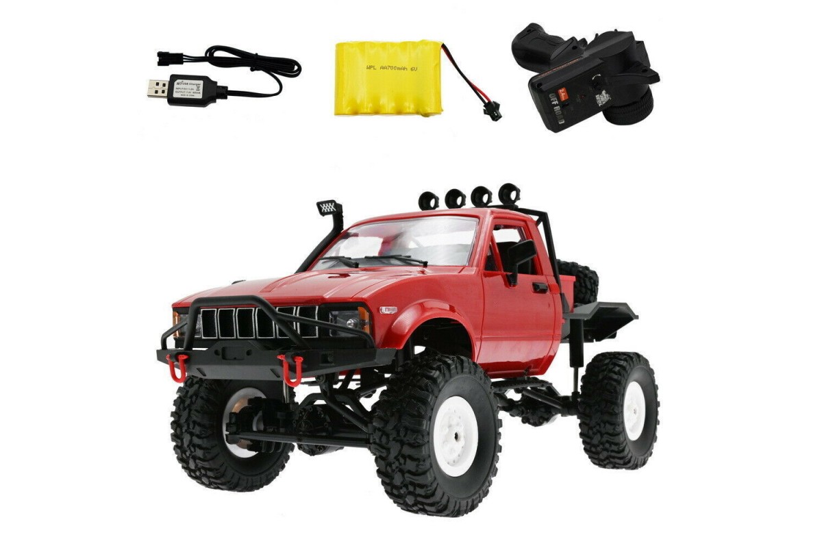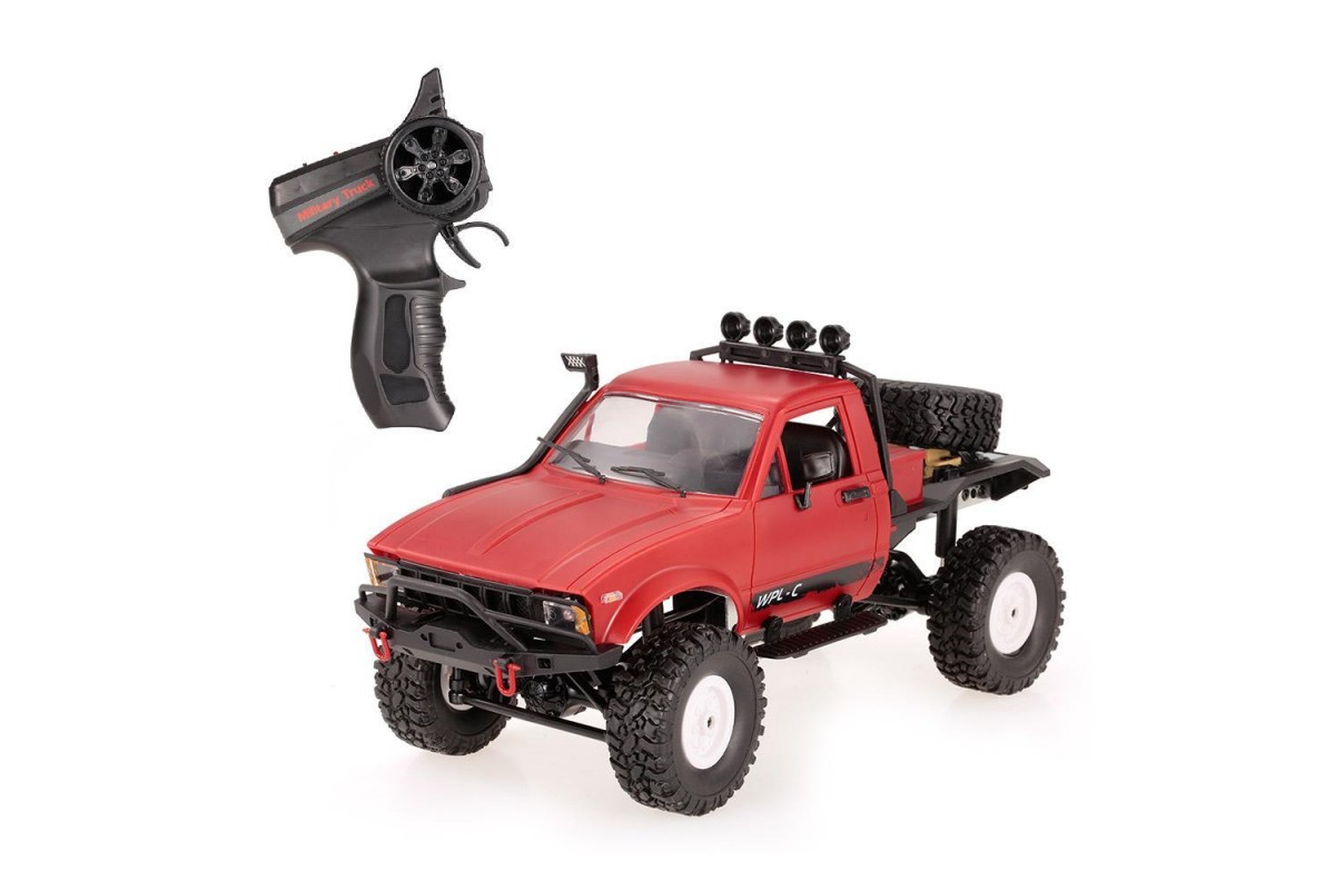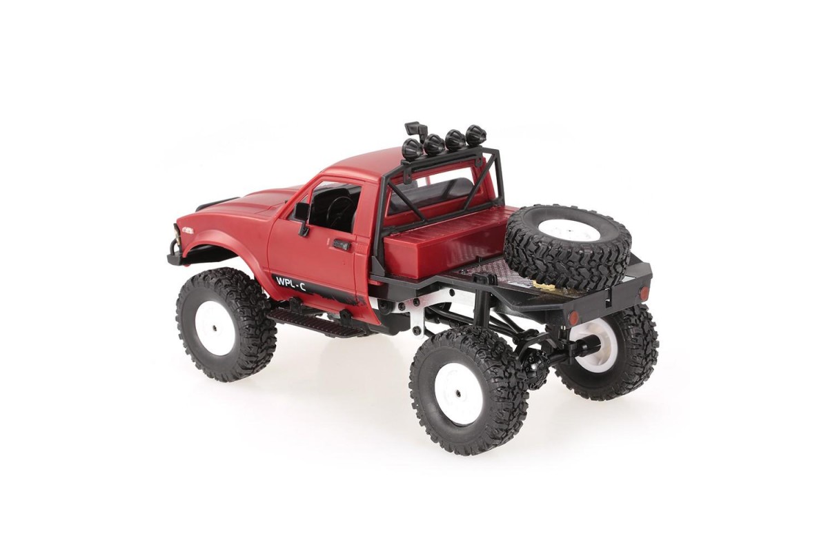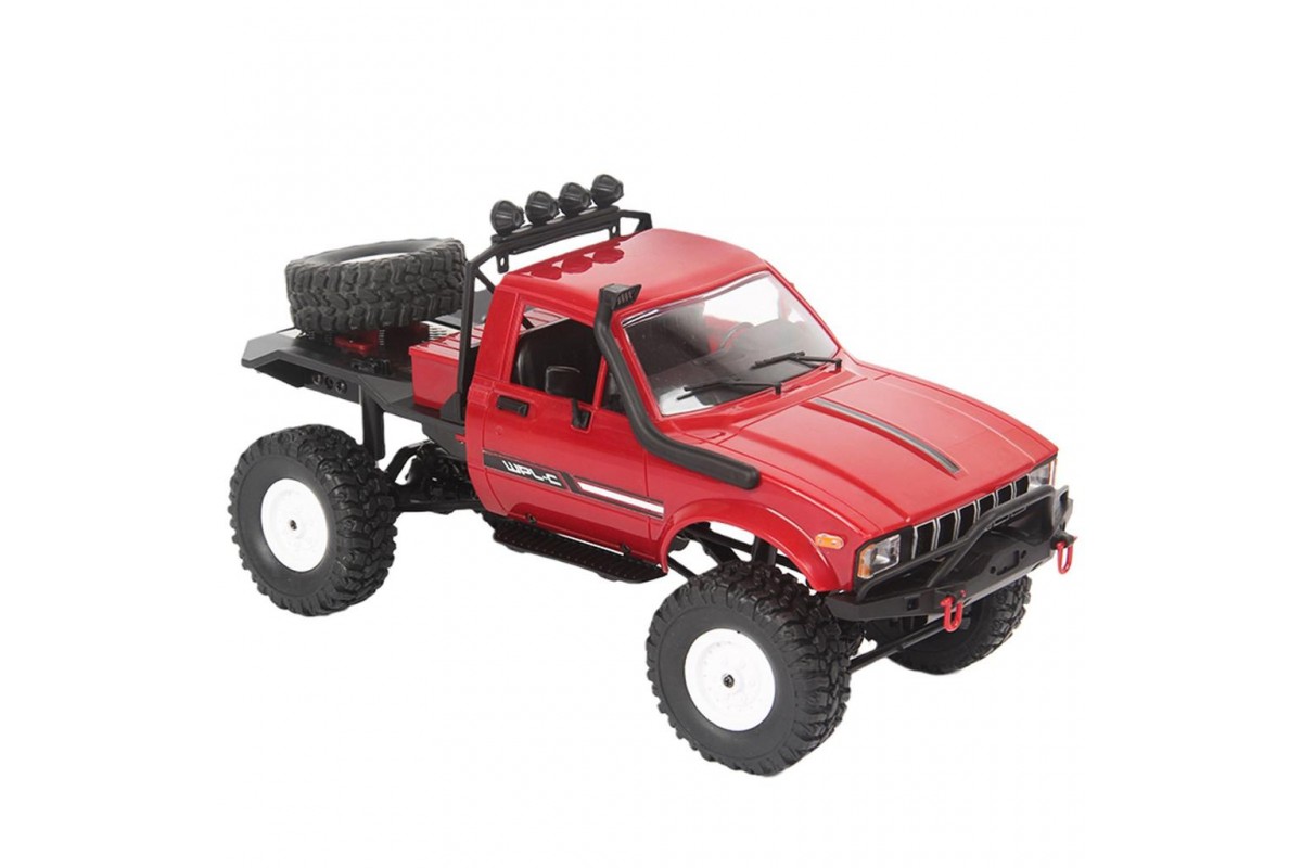 Радиоуправляемая машина WPL пикап Hilux (красный) 4WD 2.4G 1:16 RTR - WPLC-14R-RED - это радиоуправляемый внедорожный джип 1/16, оснащен полным приводом, действующей рессорной подвеской как у моделей ''краулер'' и мощным коллекторным электромотором. Внедорожник выпускается в различных вариантах окраски, имеет богатую деталировку и светящиеся передние фары. В кабине можно увидеть сиденья, руль и интерьер. Кабина изготовлена из прочного АВS пластика и установлена на металлическую раму. NiCD аккумулятор 6В 700 мАч спрятан под кабиной. Для установки батареи предусмотрен открывающийся люк.