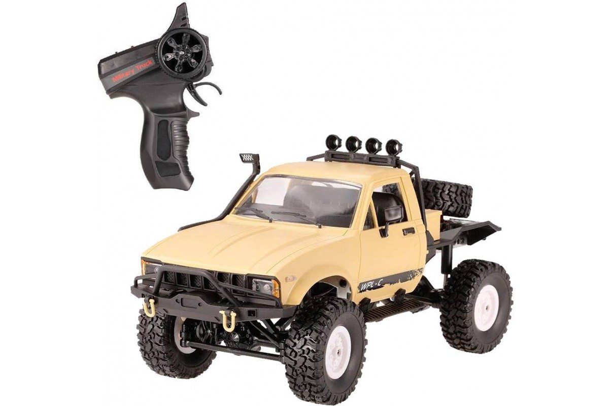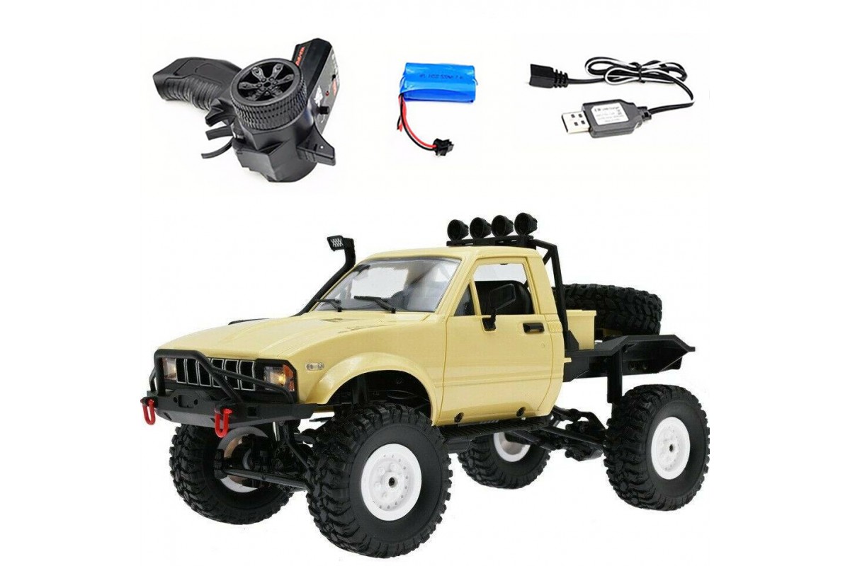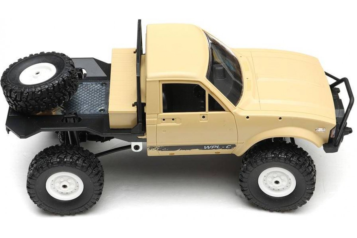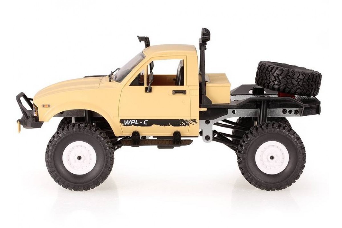 Радиоуправляемая машина WPL пикап Hilux (желтый) 4WD 2.4G 1:16 RTR - WPLC-14-YELLOW - это радиоуправляемый внедорожный джип 1/16, оснащен полным приводом, действующей рессорной подвеской как у моделей ''краулер'' и мощным коллекторным электромотором. Внедорожник выпускается в различных вариантах окраски, имеет богатую деталировку и светящиеся передние фары. В кабине можно увидеть сиденья, руль и интерьер. Кабина изготовлена из прочного АВS пластика и установлена на металлическую раму. Li-Ion аккумулятор 7.4В 500 мАч спрятан под кабиной. Для установки батареи предусмотрен открывающийся люк.