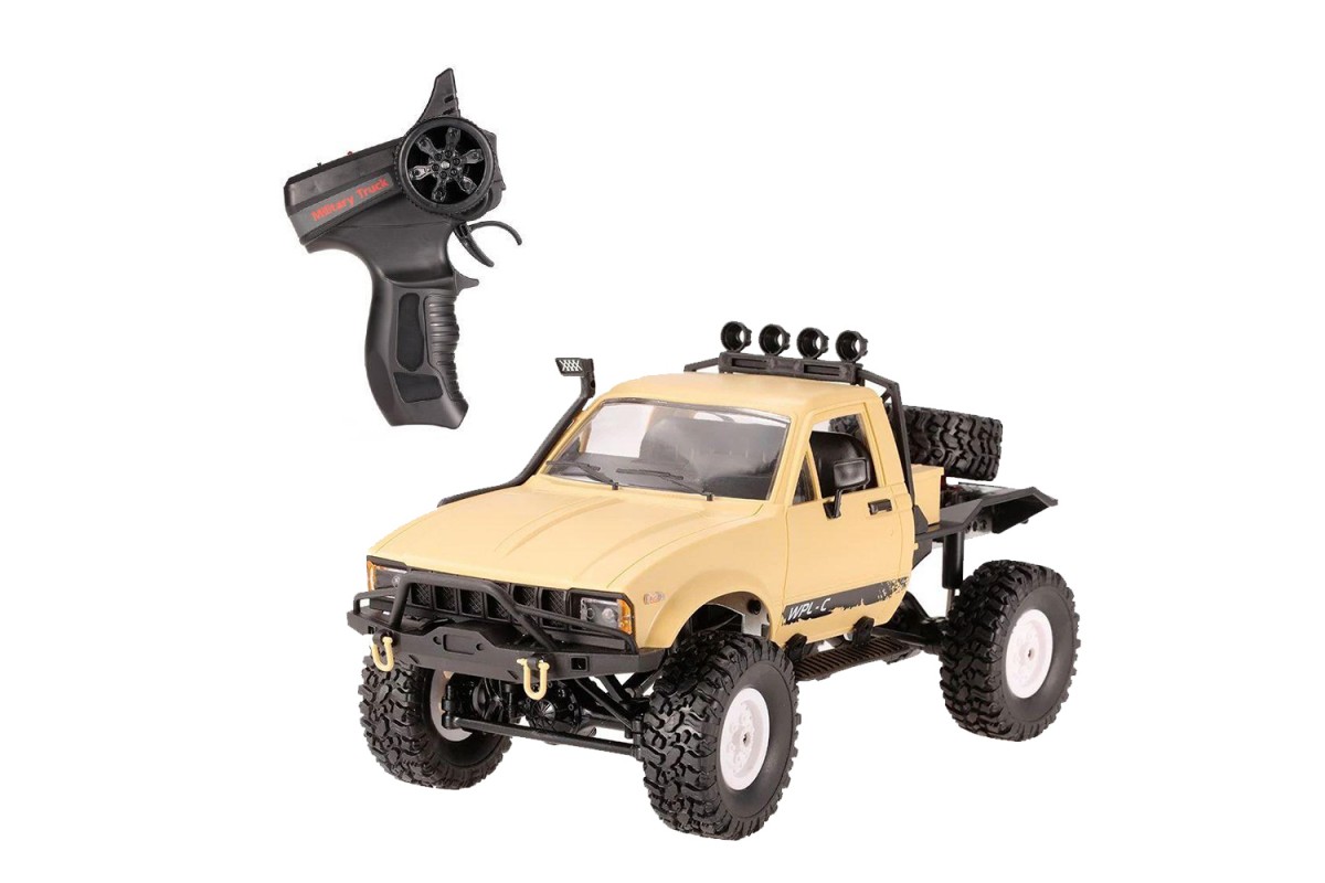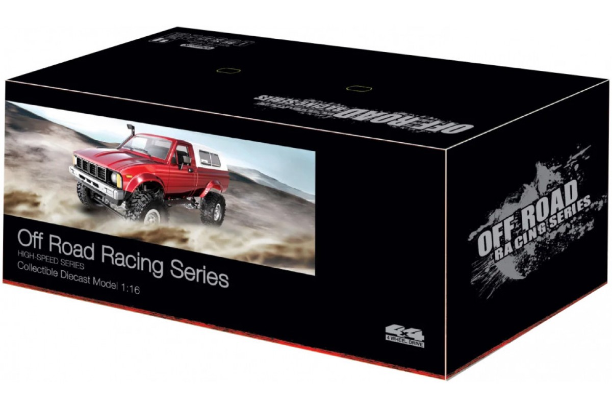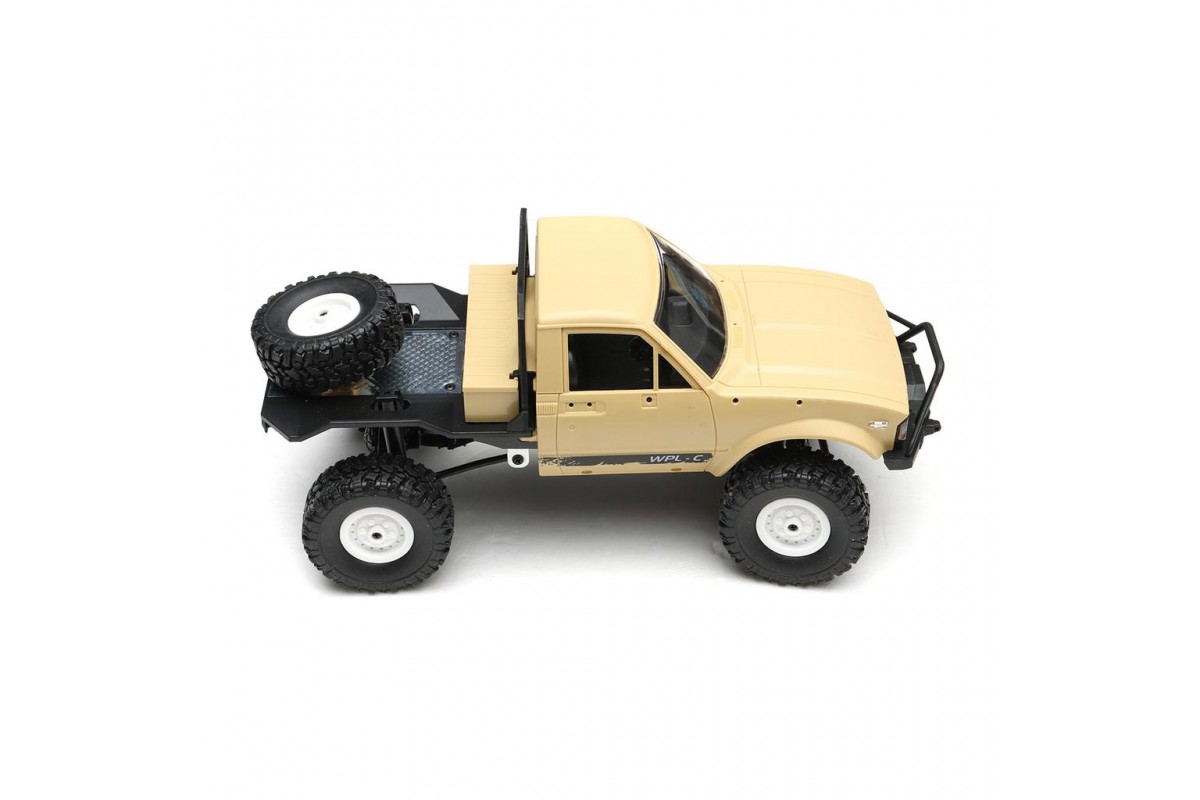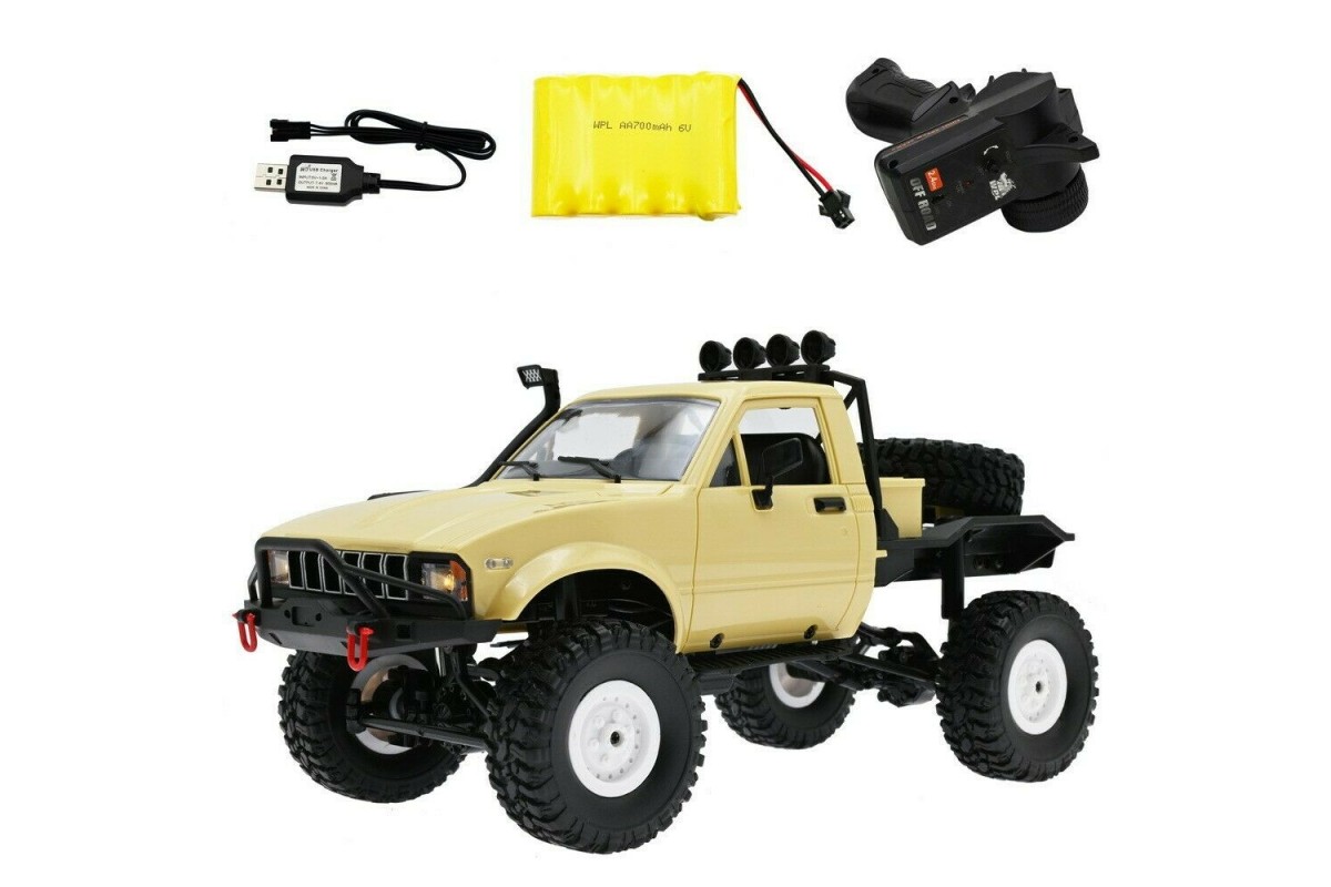 Радиоуправляемая машина WPL пикап Hilux (желтый) 4WD 2.4G 1:16 RTR - WPLC-14R-YELLOW - это радиоуправляемый внедорожный джип 1/16, оснащен полным приводом, действующей рессорной подвеской как у моделей ''краулер'' и мощным коллекторным электромотором. Внедорожник выпускается в различных вариантах окраски, имеет богатую деталировку и светящиеся передние фары. В кабине можно увидеть сиденья, руль и интерьер. Кабина изготовлена из прочного АВS пластика и установлена на металлическую раму. NiCD аккумулятор 6В 700 мАч спрятан под кабиной. Для установки батареи предусмотрен открывающийся люк.