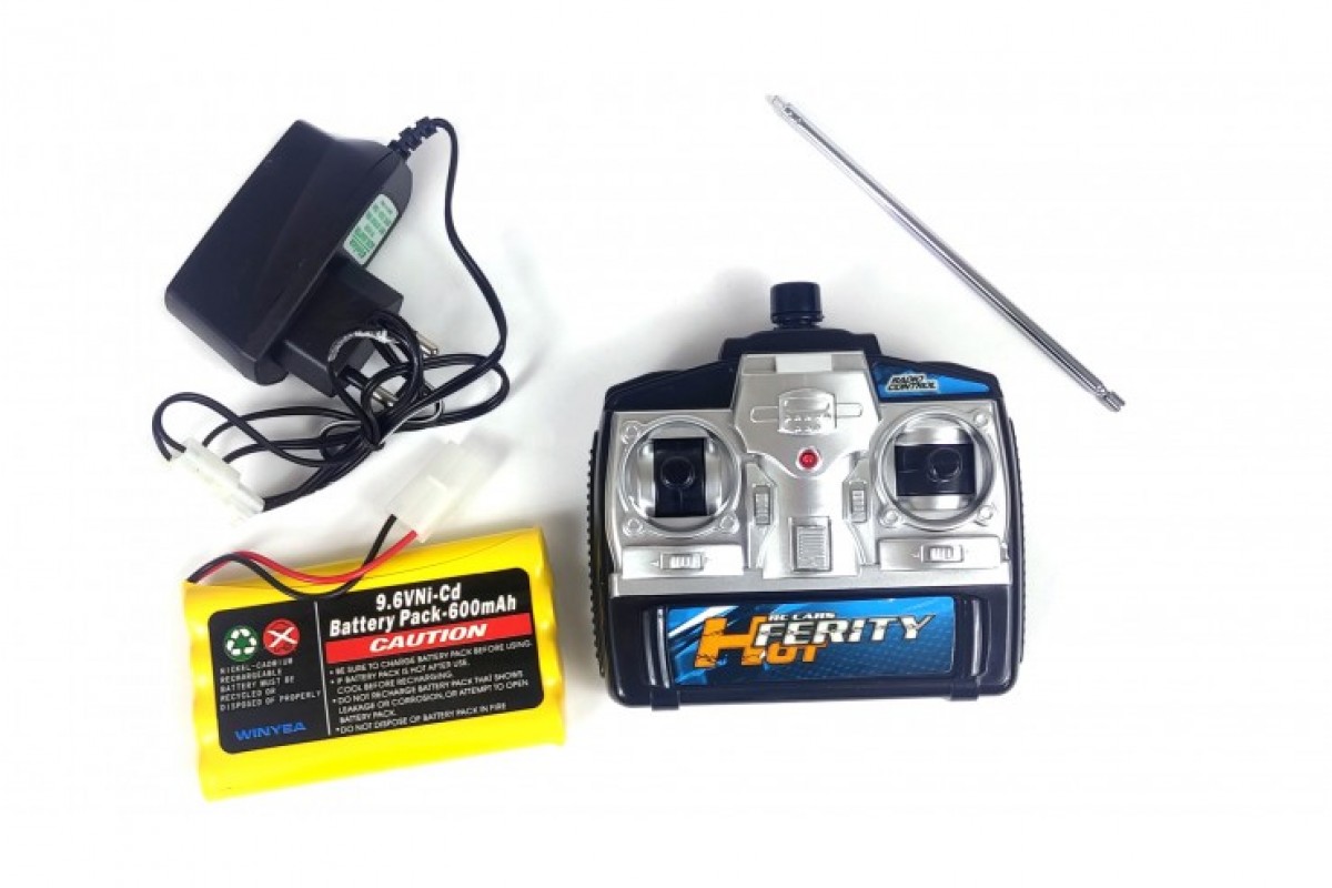 Комплектация: Машинка, пульт, аккумулятор, инструкция, зарядное устройство.