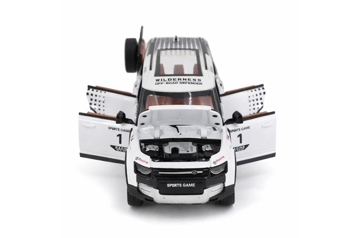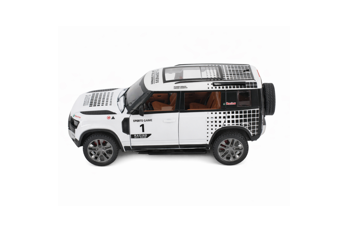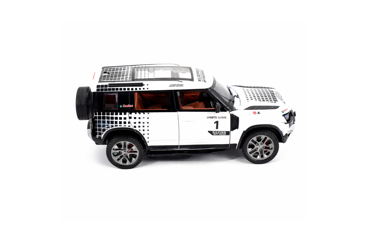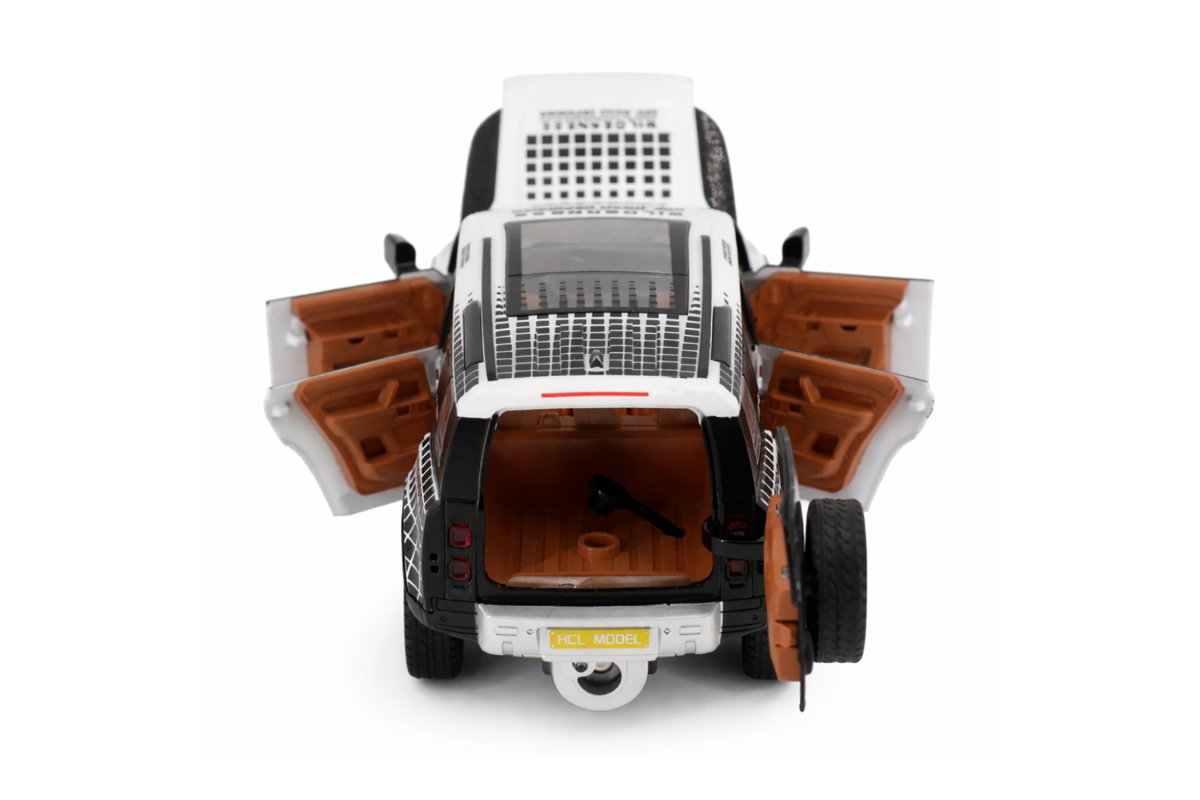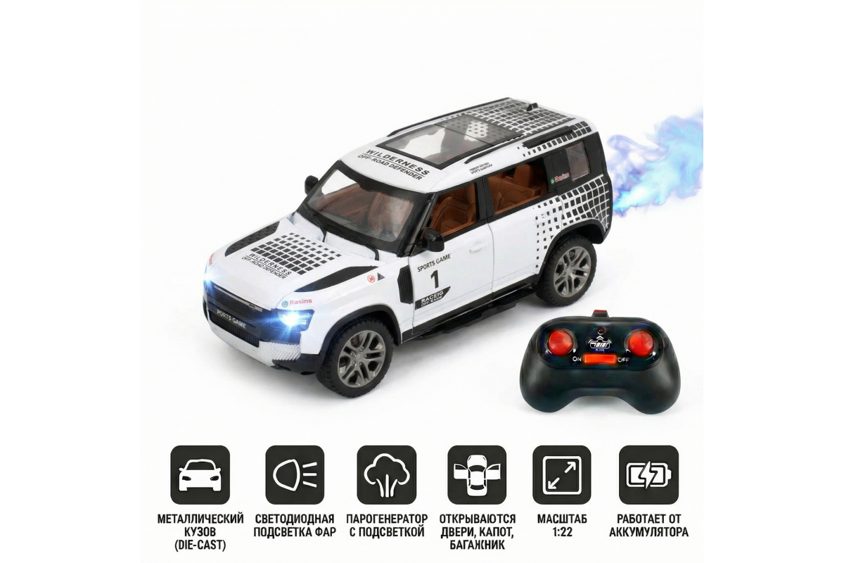 Радиоуправляемая металлическая машина Land Rover Defender 1:22 - HCL-3810-WHITE - это стильная и детализированная модель с кузовом DIE-CAST, светодиодной подсветкой фар и эффектным парогенератором с подсветкой. Открывающиеся двери, капот и багажник делают модель максимально реалистичной. Отличный вариант для игры и подарка.