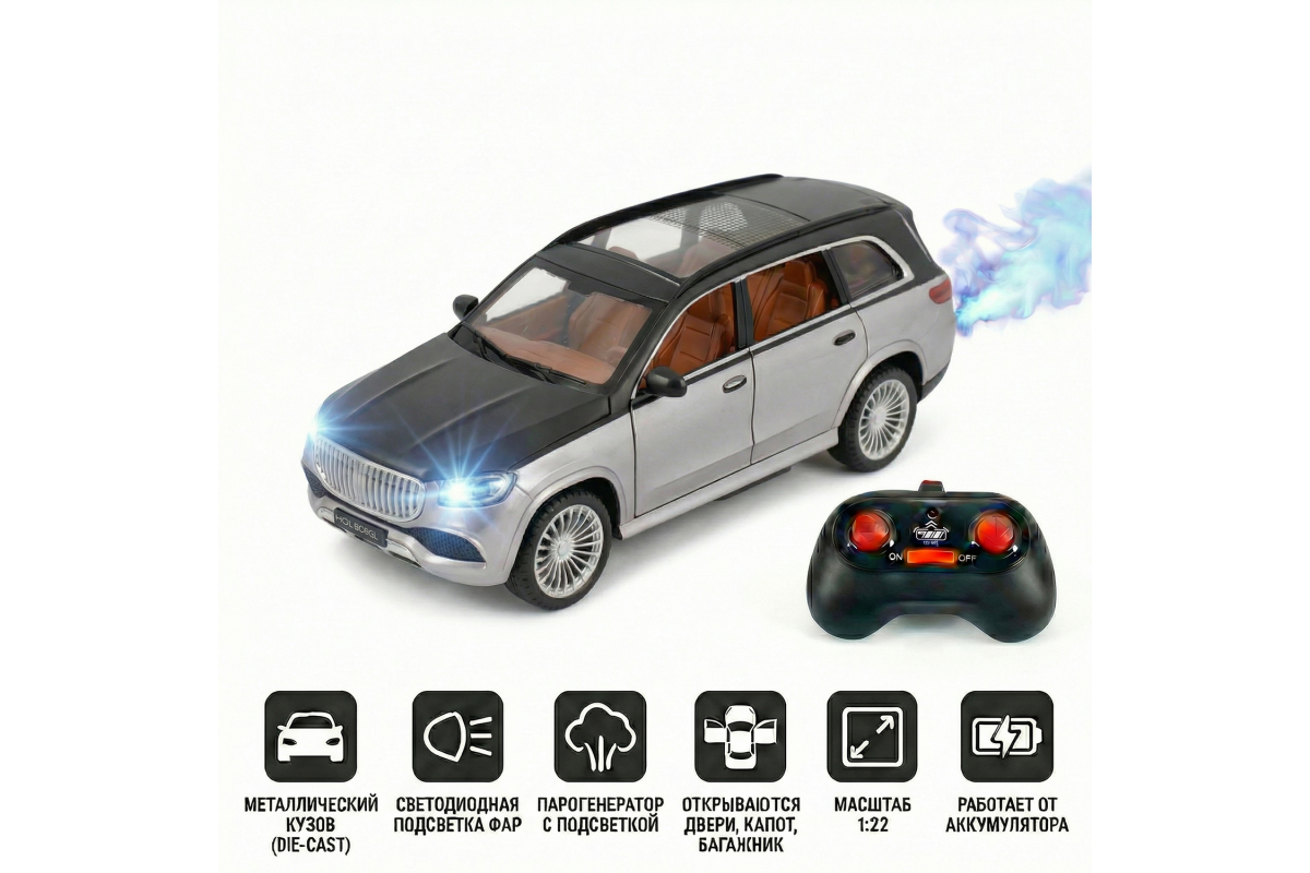 Радиоуправляемая металлическая машина Maybach GLS 1:22 - HCL-3805-SILVER - это стильная и детализированная модель с кузовом DIE-CAST, светодиодной подсветкой фар и эффектным парогенератором с подсветкой. Открывающиеся двери, капот и багажник делают модель максимально реалистичной. Отличный вариант для игры и подарка.