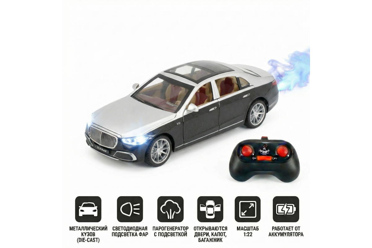 Радиоуправляемая металлическая машина Mercedes S600 1:22 - HCL-3813-BLACK - это стильная и детализированная модель с кузовом DIE-CAST, светодиодной подсветкой фар и эффектным парогенератором с подсветкой. Открывающиеся двери, капот и багажник делают модель максимально реалистичной. Отличный вариант для игры и подарка.