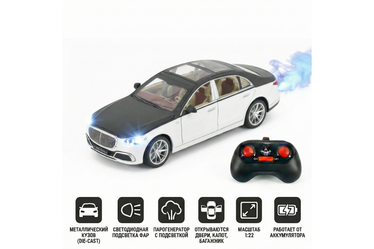 Радиоуправляемая металлическая машина Mercedes S600 1:22 - HCL-3813-WHITE - это стильная и детализированная модель с кузовом DIE-CAST, светодиодной подсветкой фар и эффектным парогенератором с подсветкой. Открывающиеся двери, капот и багажник делают модель максимально реалистичной. Отличный вариант для игры и подарка.