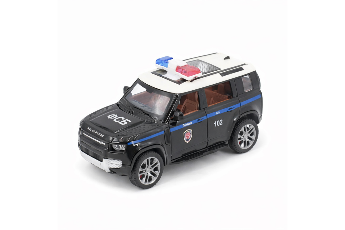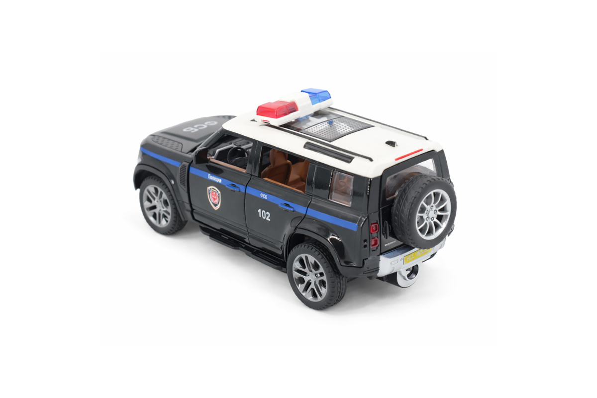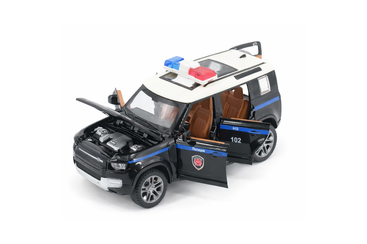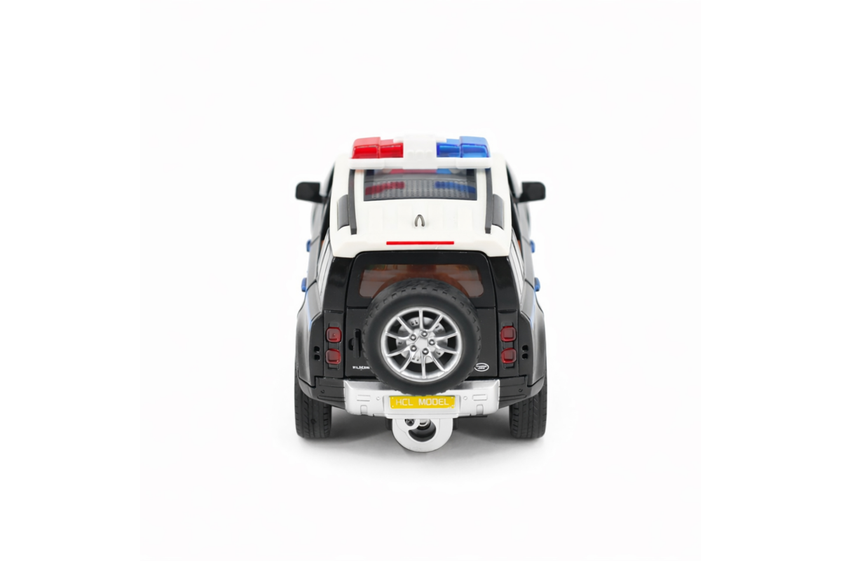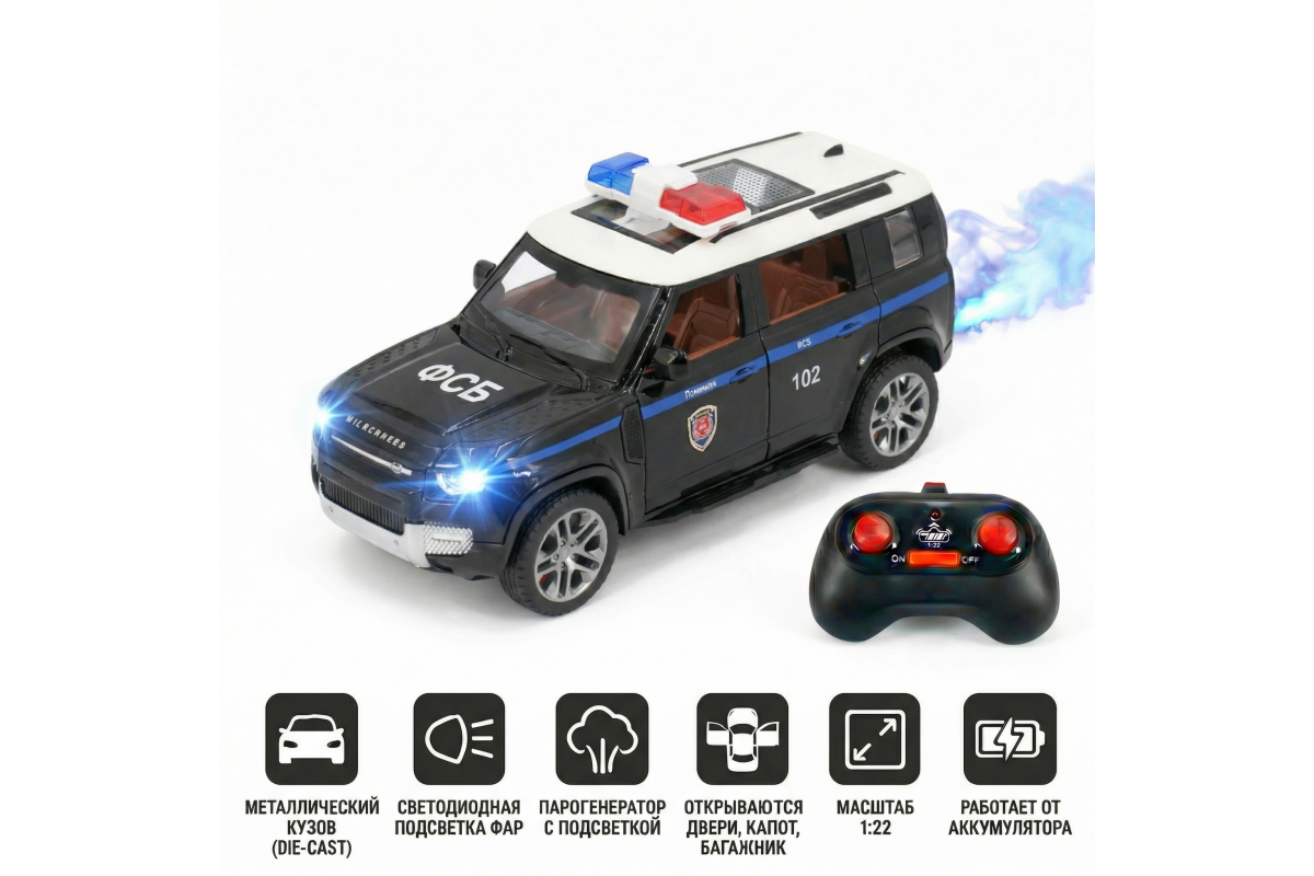 Радиоуправляемая металлическая полицейская машина Land Rover Defender 1:22 - HCL-3610-BLACK - это стильная и детализированная модель с кузовом DIE-CAST, светодиодной подсветкой фар и эффектным парогенератором с подсветкой. Открывающиеся двери, капот и багажник делают модель максимально реалистичной. Отличный вариант для игры и подарка.