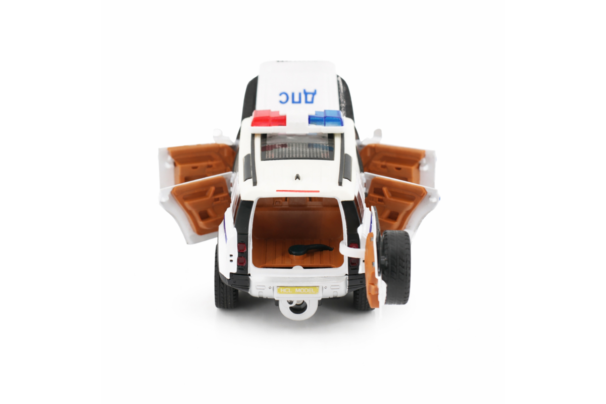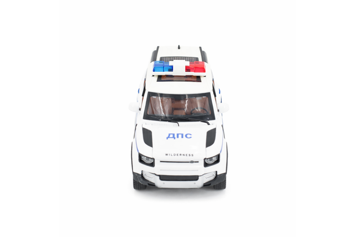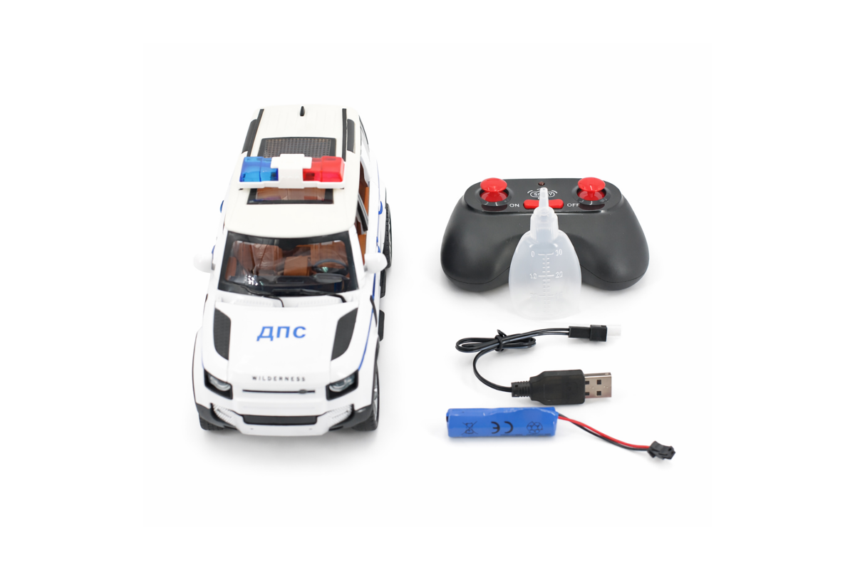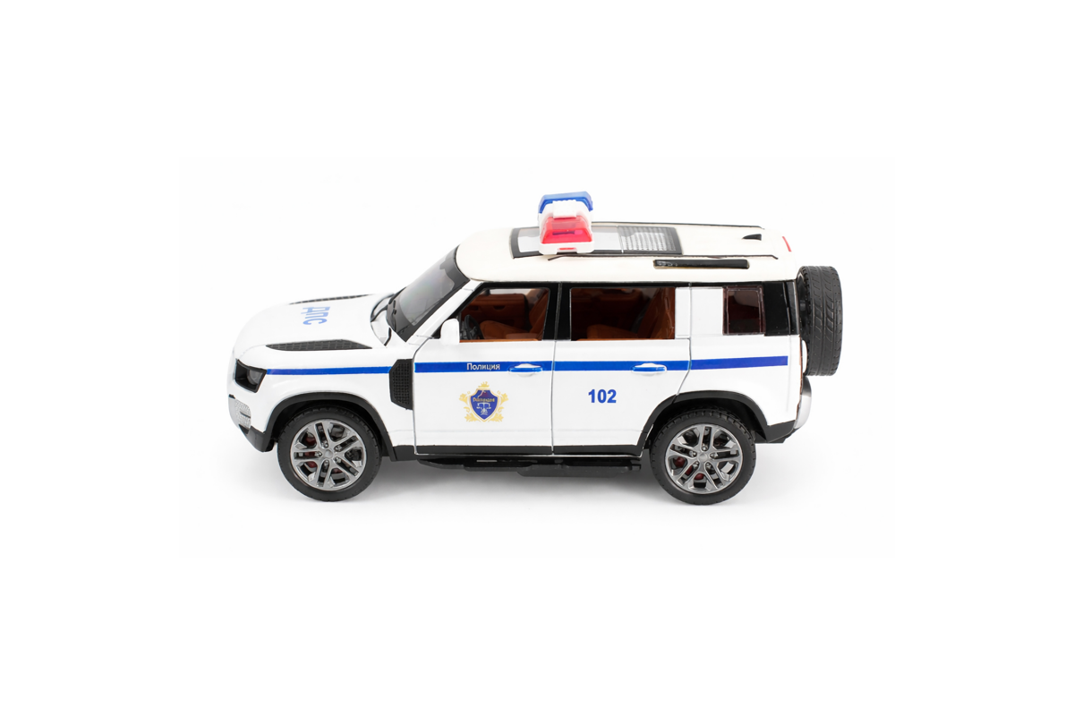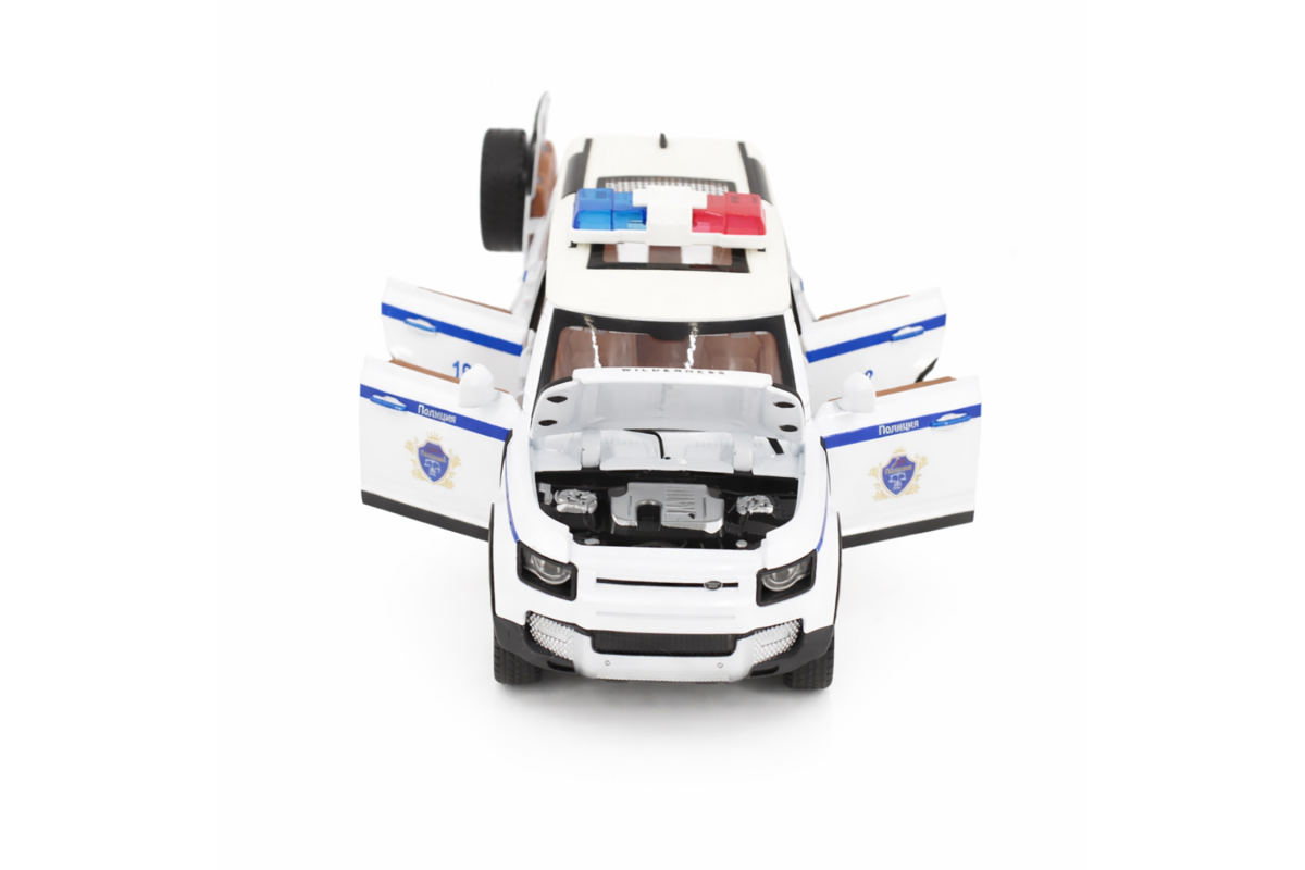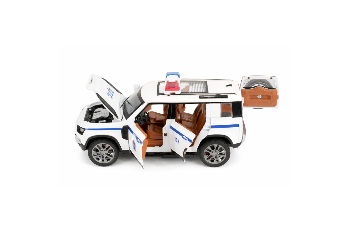 Радиоуправляемая металлическая полицейская машина Land Rover Defender 1:22 - HCL-3610-WHITE - это стильная и детализированная модель с кузовом DIE-CAST, светодиодной подсветкой фар и эффектным парогенератором с подсветкой. Открывающиеся двери, капот и багажник делают модель максимально реалистичной. Отличный вариант для игры и подарка.