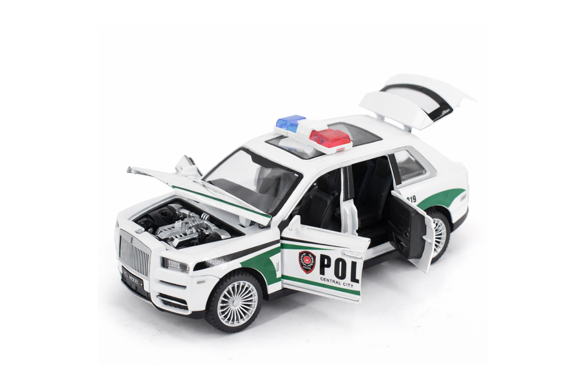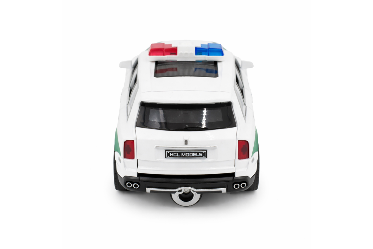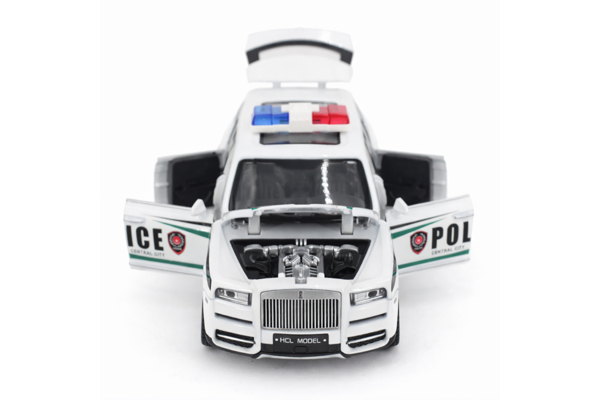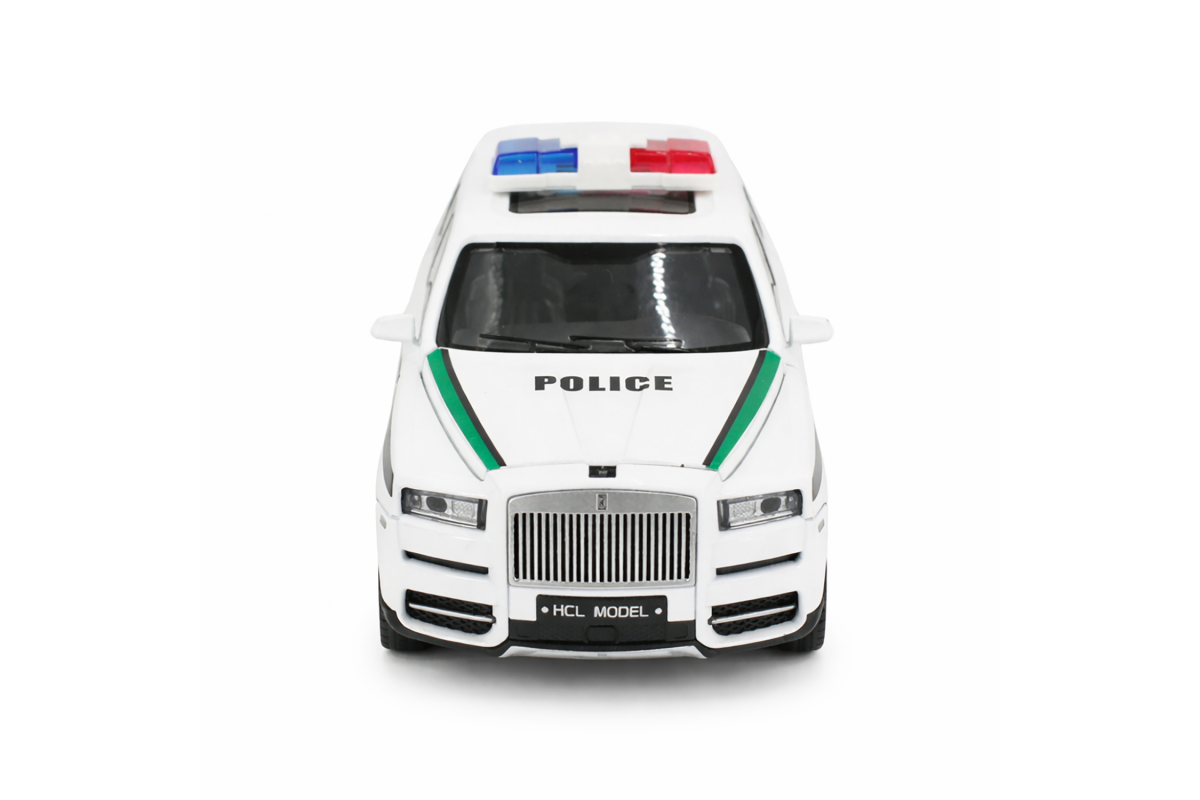 Радиоуправляемая металлическая полицейская машина Rolls-Royce Cullinan 1:22 - HCL-3606-WHITE - это стильная и детализированная модель с кузовом DIE-CAST, светодиодной подсветкой фар и эффектным парогенератором с подсветкой. Открывающиеся двери, капот и багажник делают модель максимально реалистичной. Отличный вариант для игры и подарка.