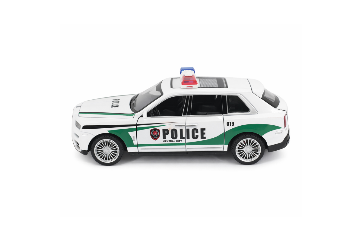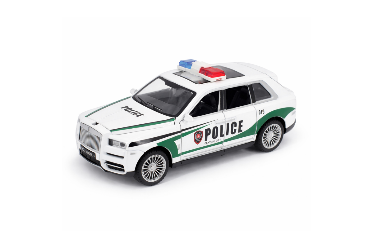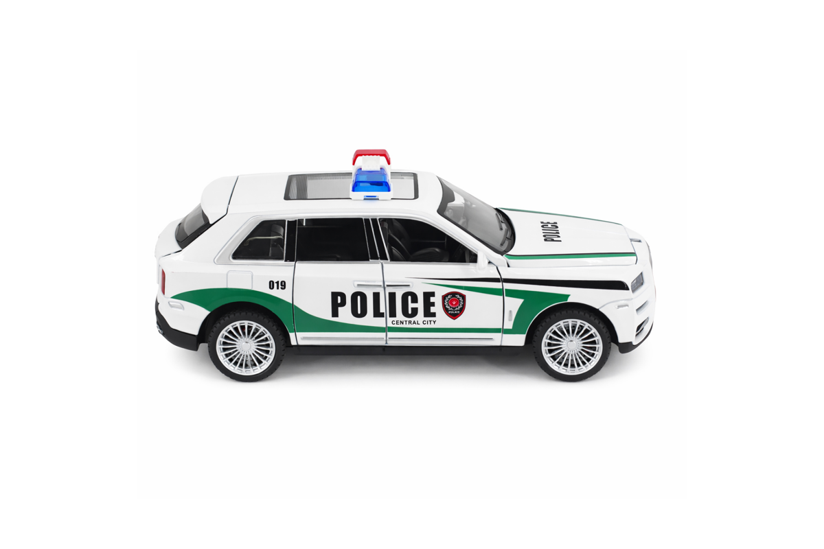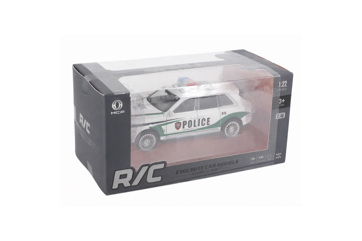 Радиоуправляемая металлическая полицейская машина Rolls-Royce Cullinan 1:22 - HCL-3606-WHITE - это стильная и детализированная модель с кузовом DIE-CAST, светодиодной подсветкой фар и эффектным парогенератором с подсветкой. Открывающиеся двери, капот и багажник делают модель максимально реалистичной. Отличный вариант для игры и подарка.