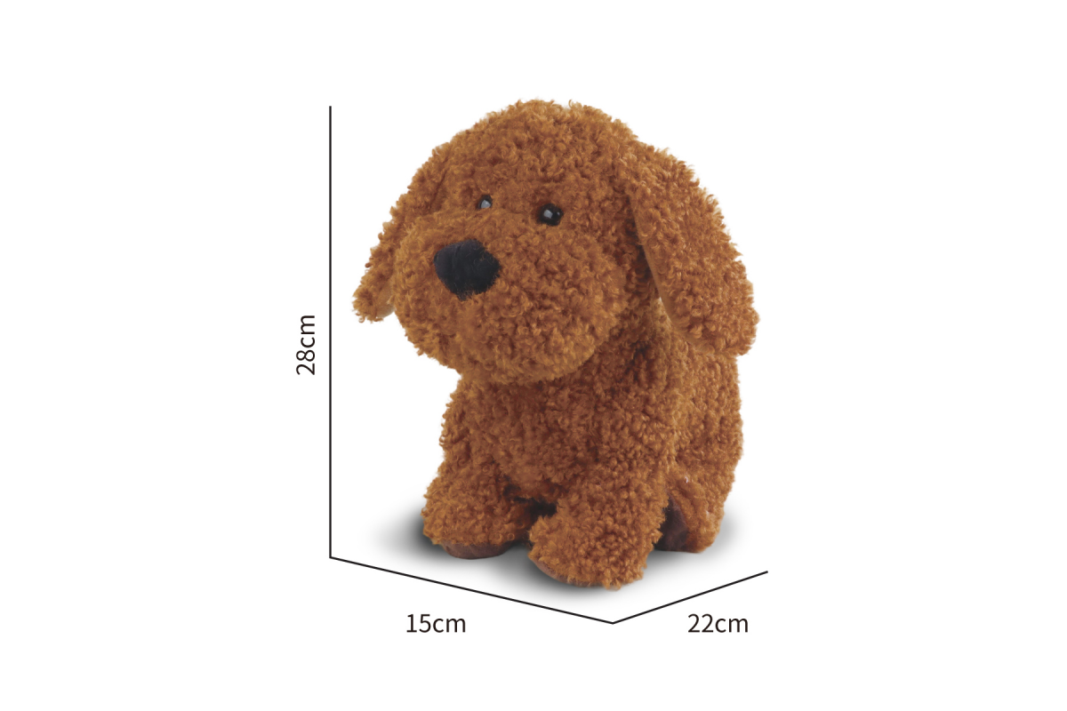 - Размеры собаки: высота 28 см, ширина 15 см, длина 22 см.