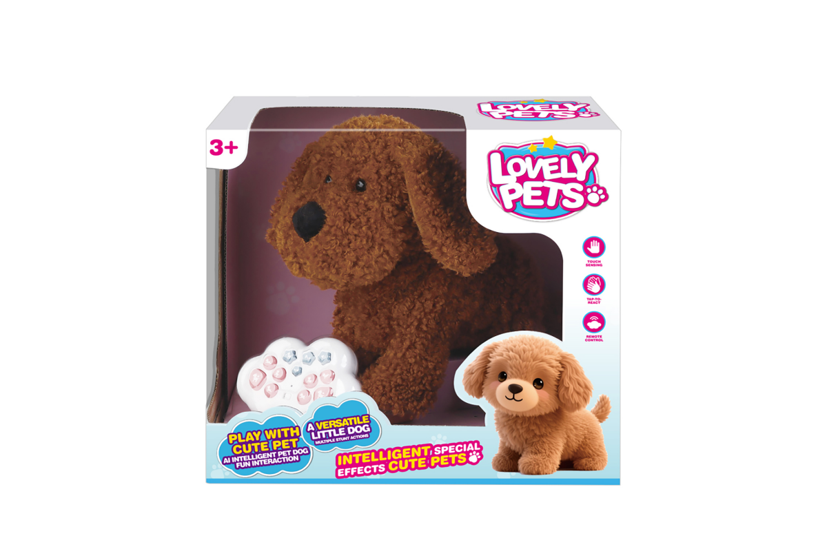 - Интерактивная собачка мягкая и приятная на ощупь, умеет ходить, делать акробатические трюки, реагирует на прикосновения и хлопки, может двигаться и воспроизводит звуки настоящей собаки.