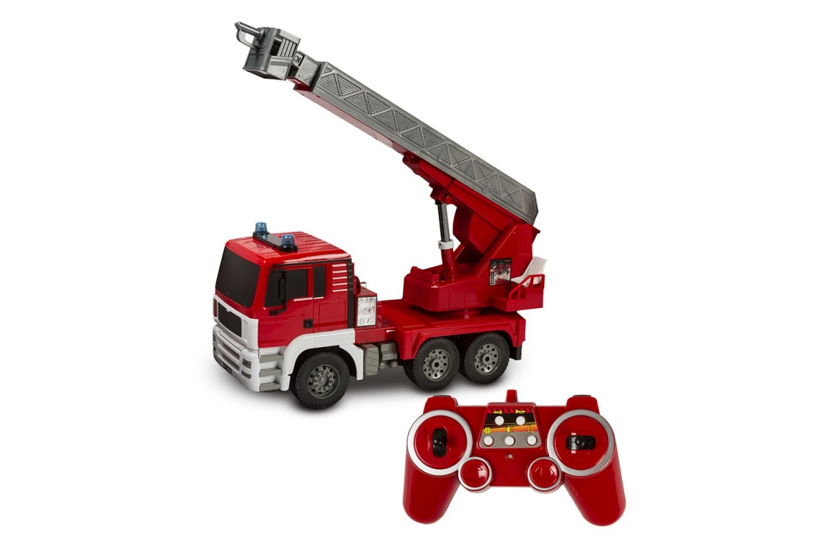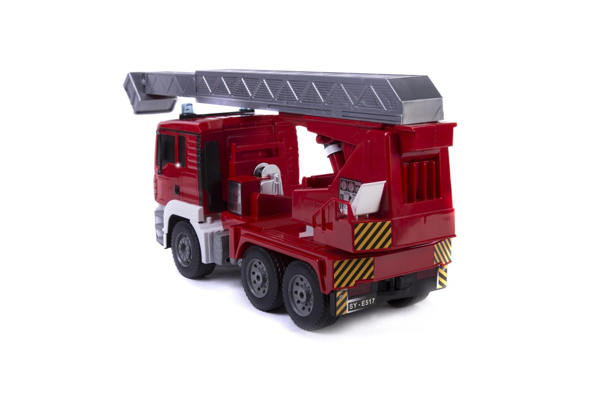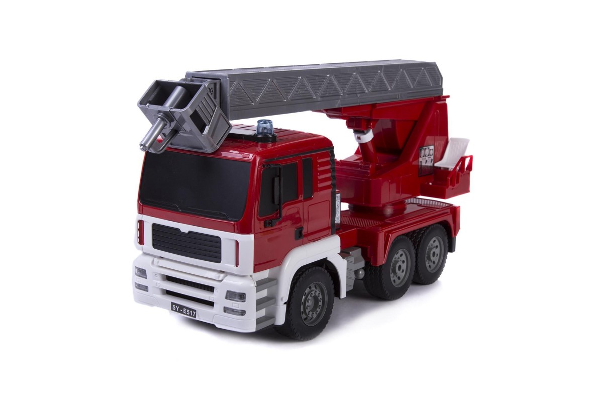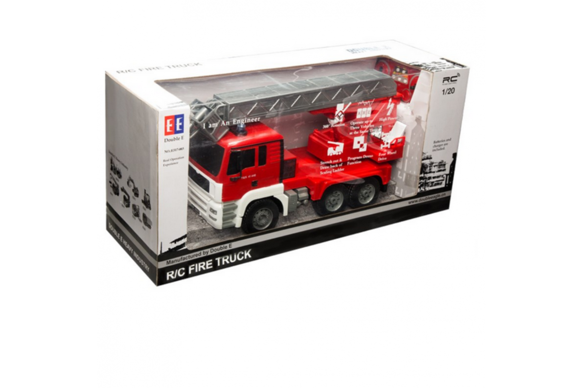 Радиоуправляемая пожарная машина Double E 1:20 2.4G - E517-003 - это пожарная машина, которая может двигаться вперед/назад, вправо/влево. Стрела может подниматься и опускаться, регулируется высота. Вращение платформы на 360 градусов. Имеется подсветка, машина издает реалистичные звуки, также может быть переведена в беззвучный режим.