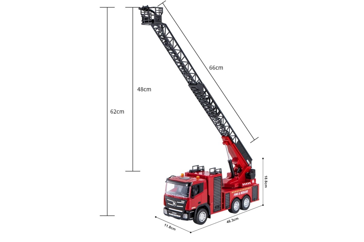 Радиоуправляемая пожарная машина HUINA 1:18 - HN1361 – это превосходная игрушка с подвижной стрелой-лестницей и действующей водонапорной помпой прекрасно подойдет для спасательной операции по тушению пожара. Подвижная стрела-лестница может поворачиваться на 270 градусов и подниматься на высоту 60 см. Она изготовлена из высококачественных материалов и имеет прочную конструкцию, что гарантирует долговечность и безопасность использования.