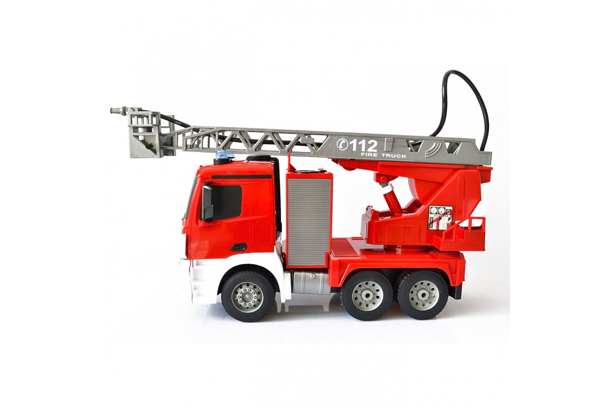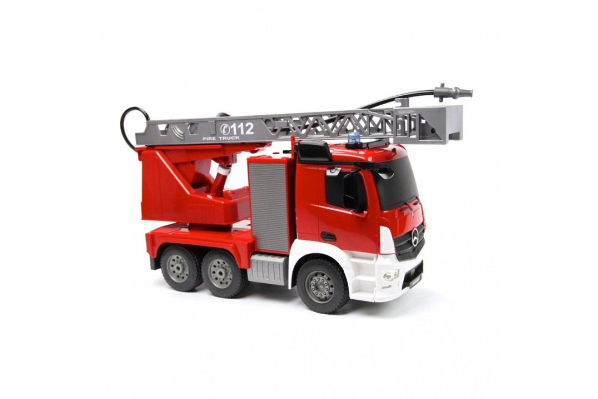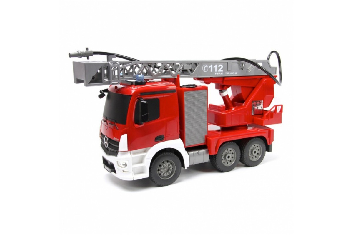 Радиоуправляемая пожарная машина Mercedes-Benz Actros E527-003 масштаб 1:20 – это реалистичная модель пожарной машины, управляя которой ребенок сможет ощутить все эмоции спасательной операции по тушению пожара. Оснащенная полным приводом модель, совершает движения во всех направлениях. Едем вперед, назад; поворачиваем вправо, влево; едем медленно, быстро; тормозим. Все движения как во время настоящей спасательной операции. Дополнительный функции – подсветка, шум двигателя, сирена и «мигалки» на кабине создадут еще более реалистичную картину. При желании звуковые сигналы можно отключать.