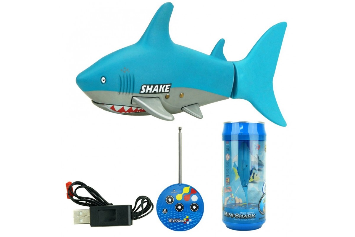 Акула обладает компактным размером, благодаря чему делает ловкие маневры в воде и обладает быстрой подвижностью. Проворная акула станет интересной игрой для ребенка. Радиоуправляемая рыбка, поставляющаяся в стильной упаковке в виде банки с напитком, на удивление простая и эффектная игрушка. Рыбку можно запустить в бассейн, ванну или даже аквариум и управлять ею с помощью команд с пульта.