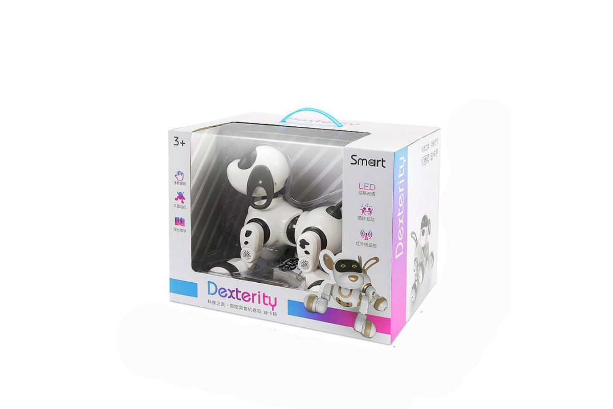 Радиоуправляемая собака-робот Smart Robot Black Dog ''Dexterity'' - 18011 - это роботизированная, интерактивная собака, оснащенная множеством функций, с помощью которых она существует, как настоящая собака! Большое количество датчиков позволяет ей адаптироваться в пространстве, выполнять команды. Есть кнопки для движения собачки, кнопки для пения, танцев и режим обучения (на англ. языке). Жидкокристаллические глаза показывают внутреннее состояние Вашего любимца - радость, стеснительность и даже любовь! Как и все домашние питомцы, не всегда ведет себя послушно, когда разыграется.