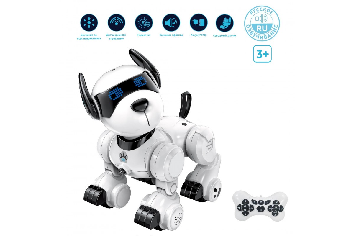 Радиоуправляемая собака Тобби (акб, сенсорное управление, русский звук) - ZYA-A3090 - это уникальный радиоуправляемый робот, который имеет футуристичную внешность собаки, может показывать различные эмоции и издавать звуки. Управление роботом производится пультом управления и через сенсорные датчики. Робот-собака Тобби с дистанционным управлением ходит, танцует, издает звуки животных и поёт песни!