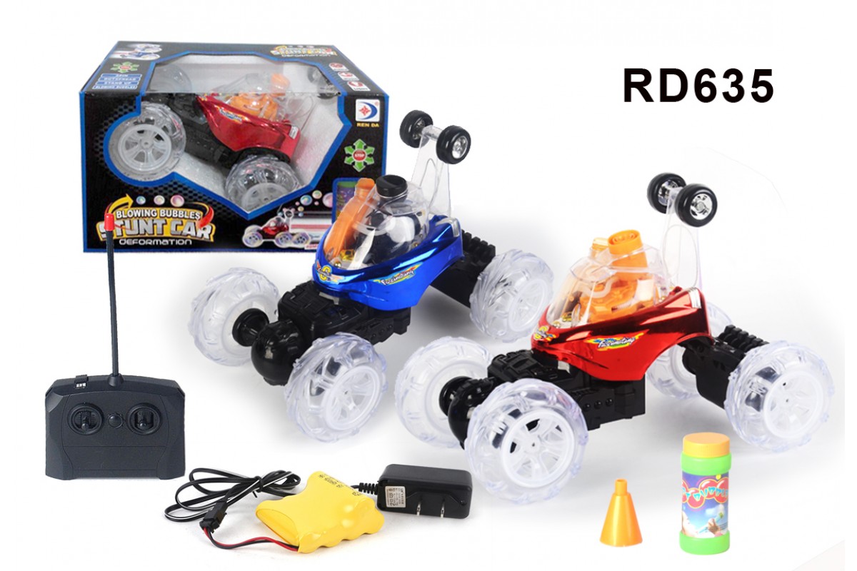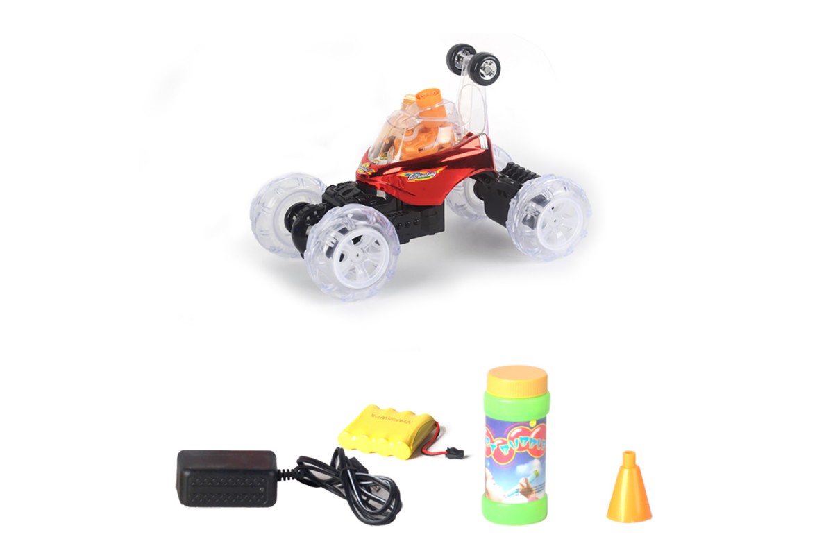 Радиоуправляемая трюковая машина-перевертыш RENDA (29 см, красный, мыльные пузыри) - RD635 - это музыкальная машинка-перевертыш на р/у c мыльными пузырями Ren Da RD635 - это настоящая каскадерская машинка. Она способна переворачиваться и становиться на колеса из любого положения. Создатели снабдили ее яркой подсветкой которая переливается разными цветами. Так же на автомобиле установлено устройство которое пускает мыльные пузыри. Игрушка очень понравится ребенку: она способна не только развеселить малыша, но и развивает моторику его пальчиков.