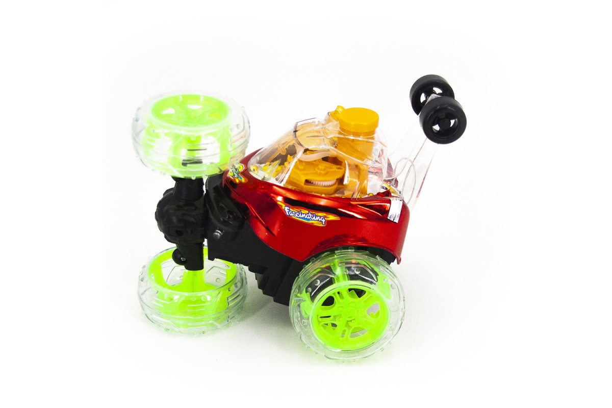 Она может ехать вперед, назад, вправо, влево, принимать позицию на дыбах, опрокидывание 360, вращение, вращение вокруг своей оси по и против часовой стрелки и т.д. При столкновении с препятствием она не буксует на месте, а отталкивается от препятствия и продолжает движение. У этой музыкальной машины-перевертыша колеса светятся ярким светом. Увлекательная игра в машинку не только развлекает ребёнка, но и вырабатывает такие практические качества, как ловкость и слаженность движений рук, сноровку и координацию, развивает мелкую моторику пальцев рук, заставляет подвигаться и пофантазировать.