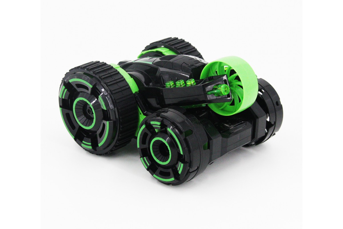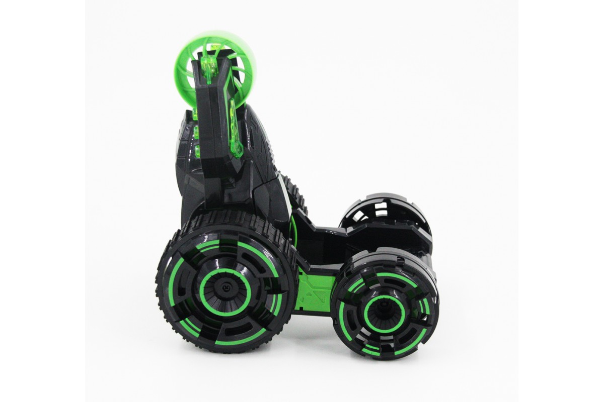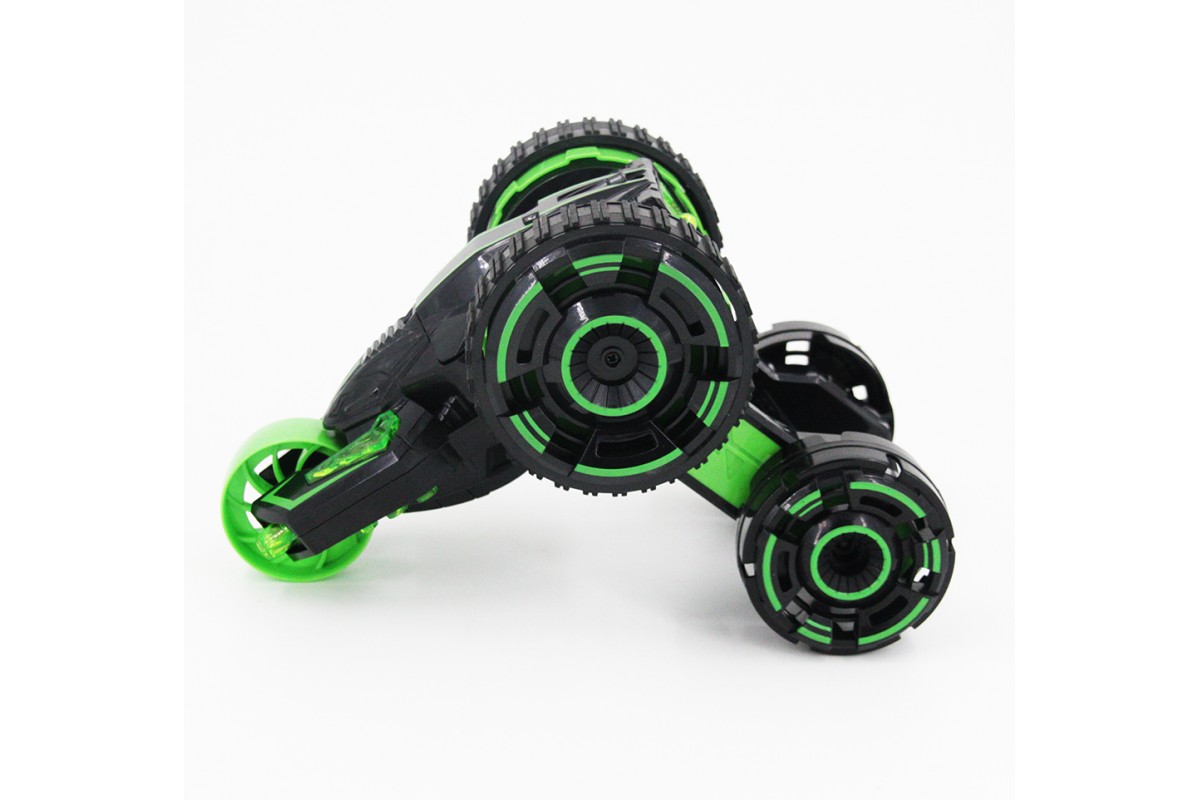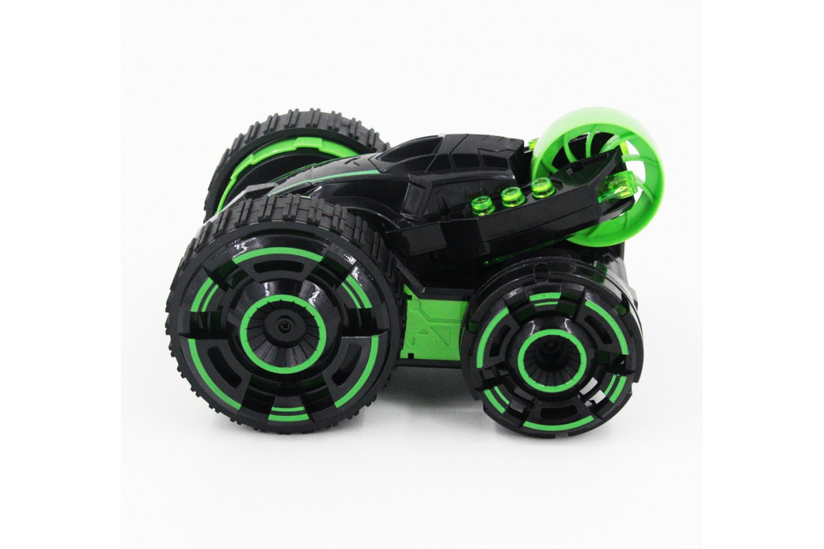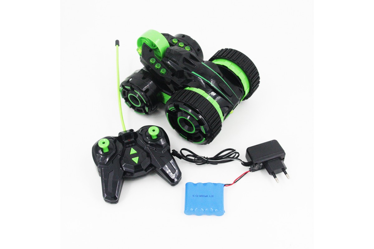 Радиоуправляемая зеленая машина Перевертыш - 5588-602-G - это удивительная машинка на радиоуправлении способна трансформироваться, переворачиваться и продолжать движение. Такая способность обеспечивается за счет специально разработанной конструкции, состоящей из 5 колес. Перевертыш 5588-602 очень стильный и яркий, от него придут в восторг как мальчишки, так и девчонки. Управление 4-канальное, не требует особых знаний и к нему можно очень быстро привыкнуть. Питание перевертыша за счет мощного аккумулятора, подзарядка которого осуществляется от сети.