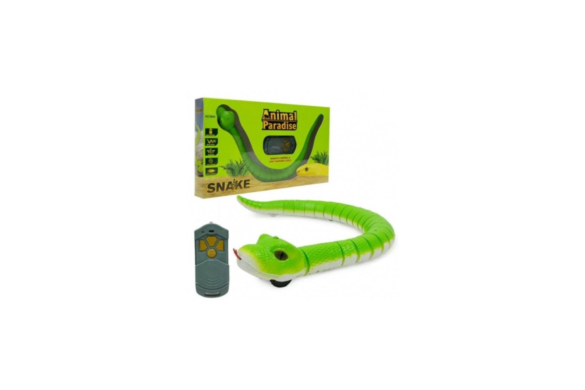 Радиоуправляемая зеленая змея RuiCheng - RUI-8904-GREEN - это змея на пульте управления 8904, которая ползает как настоящая! Игрушка изготовлена из высококачественного и экологически чистого материала. Управляется с помощью инфракрасного пульта ДУ. Змея может двигаться вперед, вправо, влево, по кругу. Работает от аккумуляторной батареи (входит в комплект). Пульт дистанционного управления работает от 2-х батареек типа ''АА'' 1.5V (не входят в комплект).