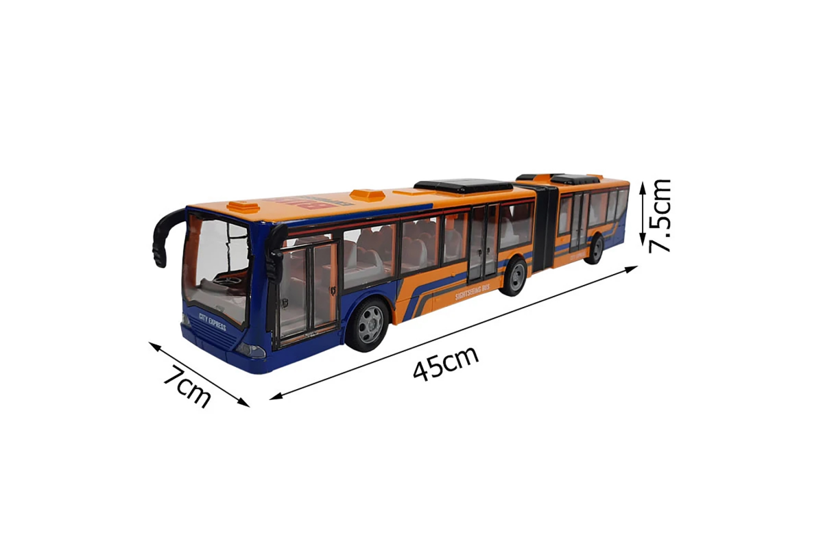 Данная игрушка представляет собой весьма реалистичную модель автобуса-гармошки с большими окнами и дверьми! Отличная игрушка для активных игр дома и на улице. Простая система дистанционного управления не потребует много времени на освоение тонкостей. Автобусом легко управлять, он может выполнять повороты, двигаться вперед и сдавать назад.