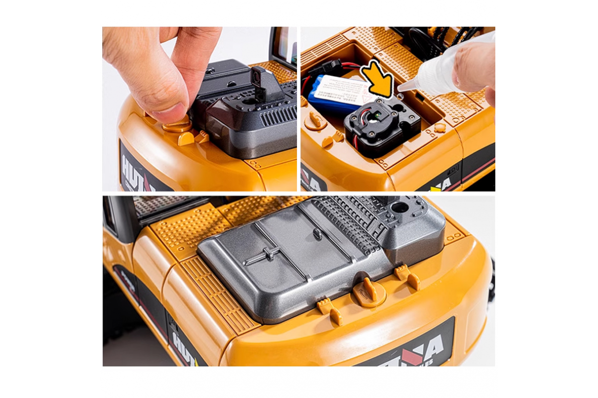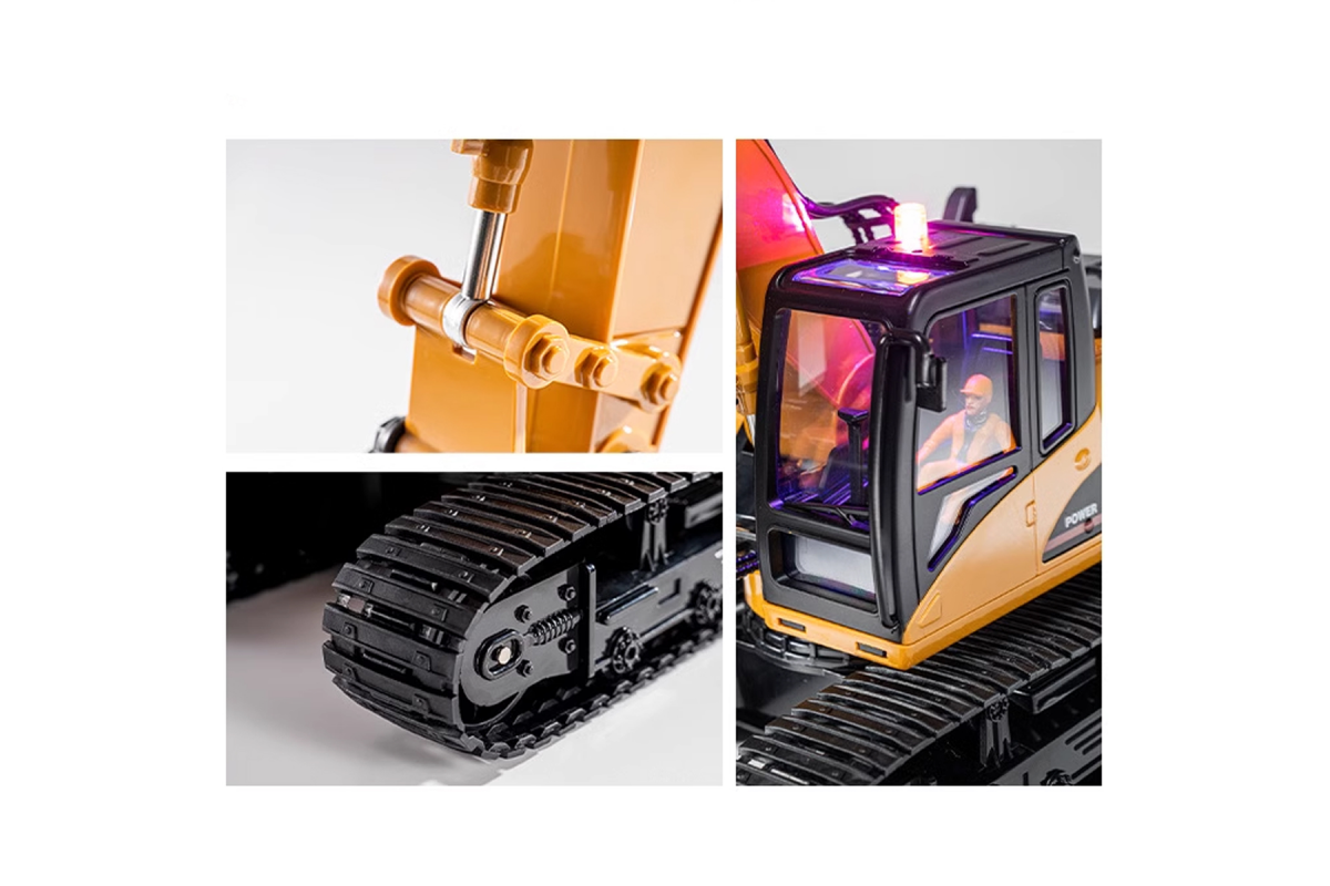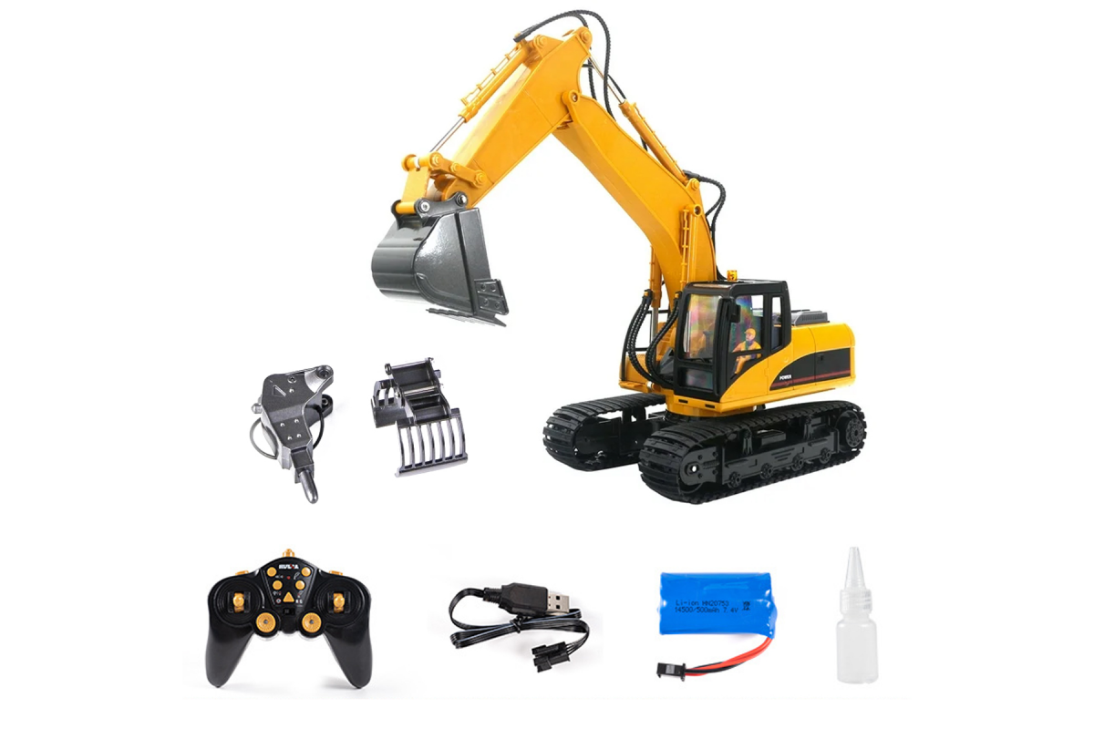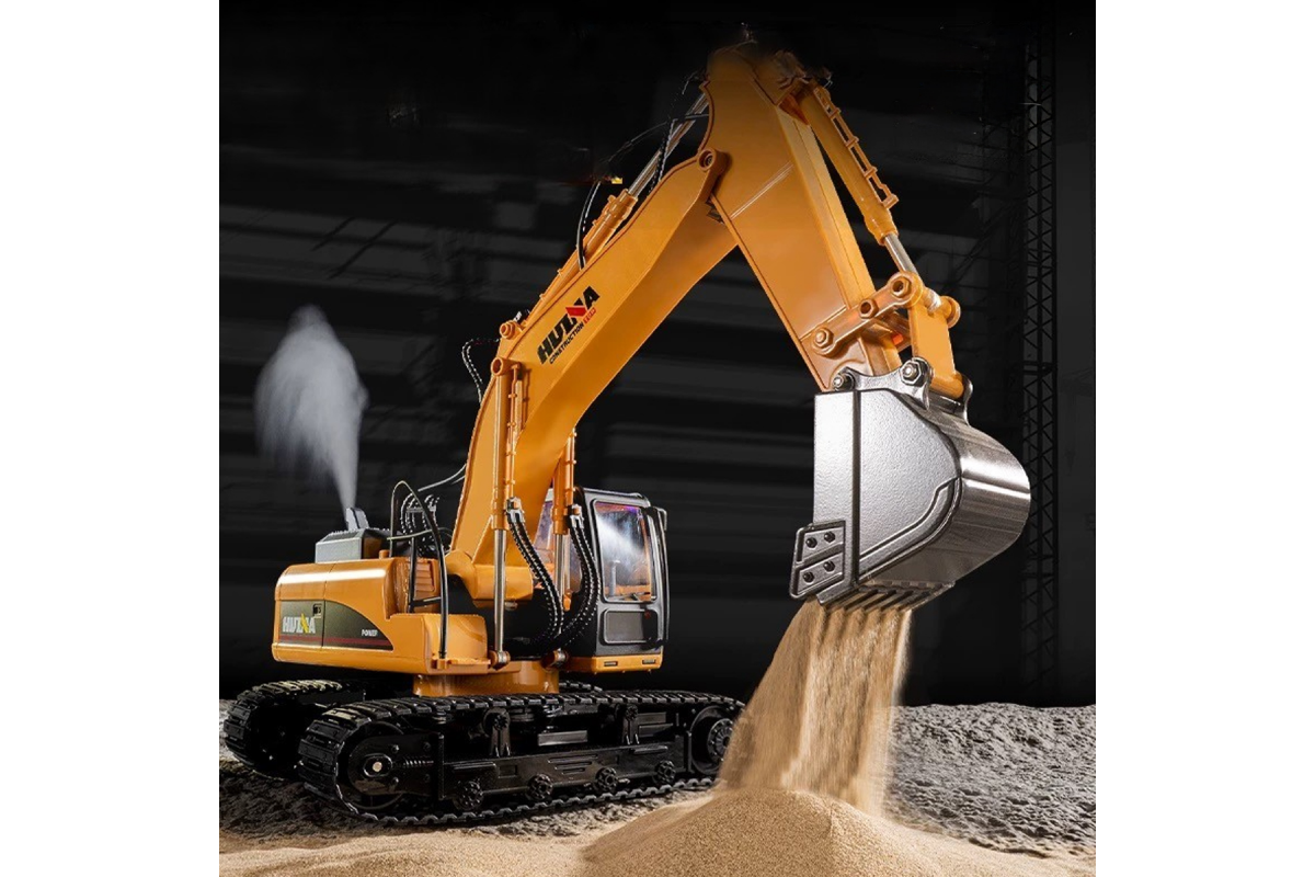 - Экскаватор на радиоуправлении, который поможет вашему малышу выкопать ямку, сгрести/разгрести кучу земли и мусора, перенести стройматериалы на небольшую дистанцию.